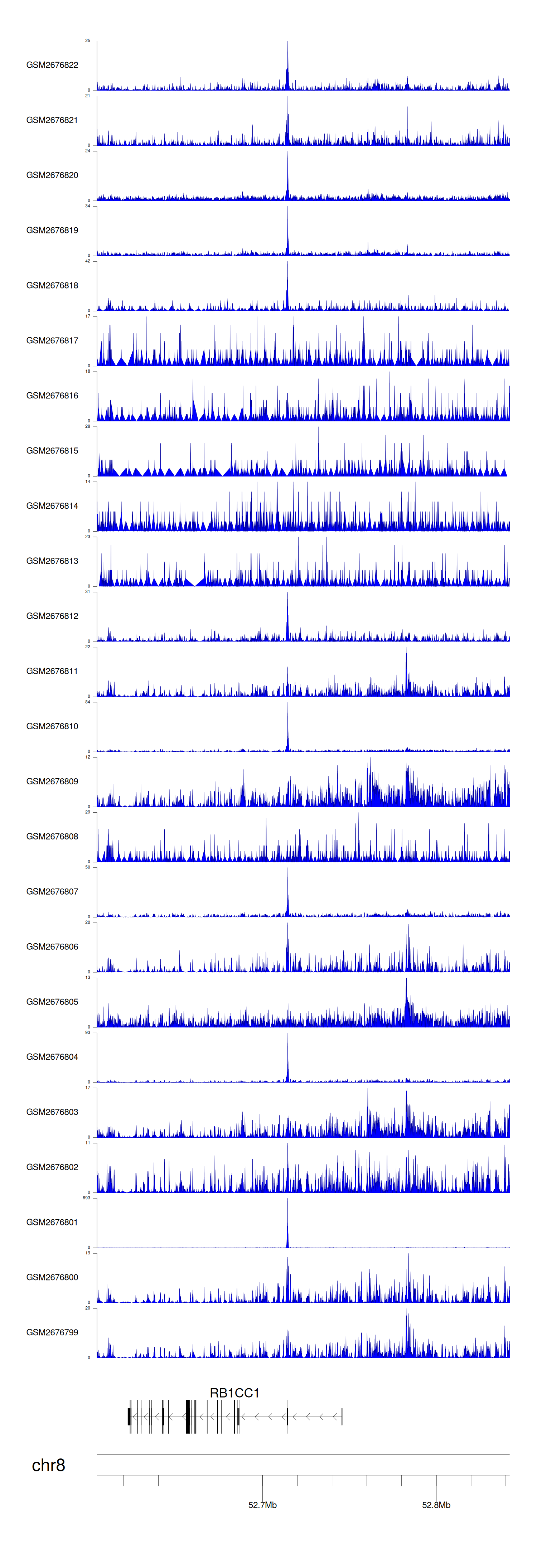 > Dataset: GSE211651 - RB1CC1 peak across samples