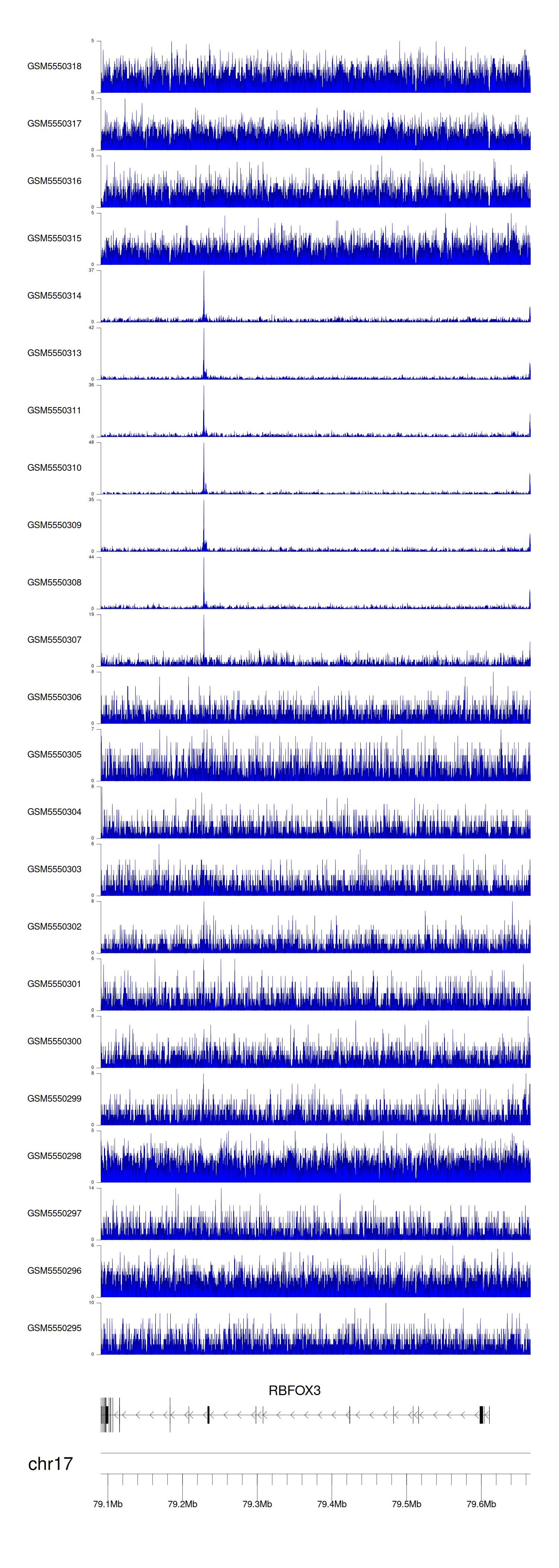 > Dataset: GSE143026 - RBFOX3 peak across samples