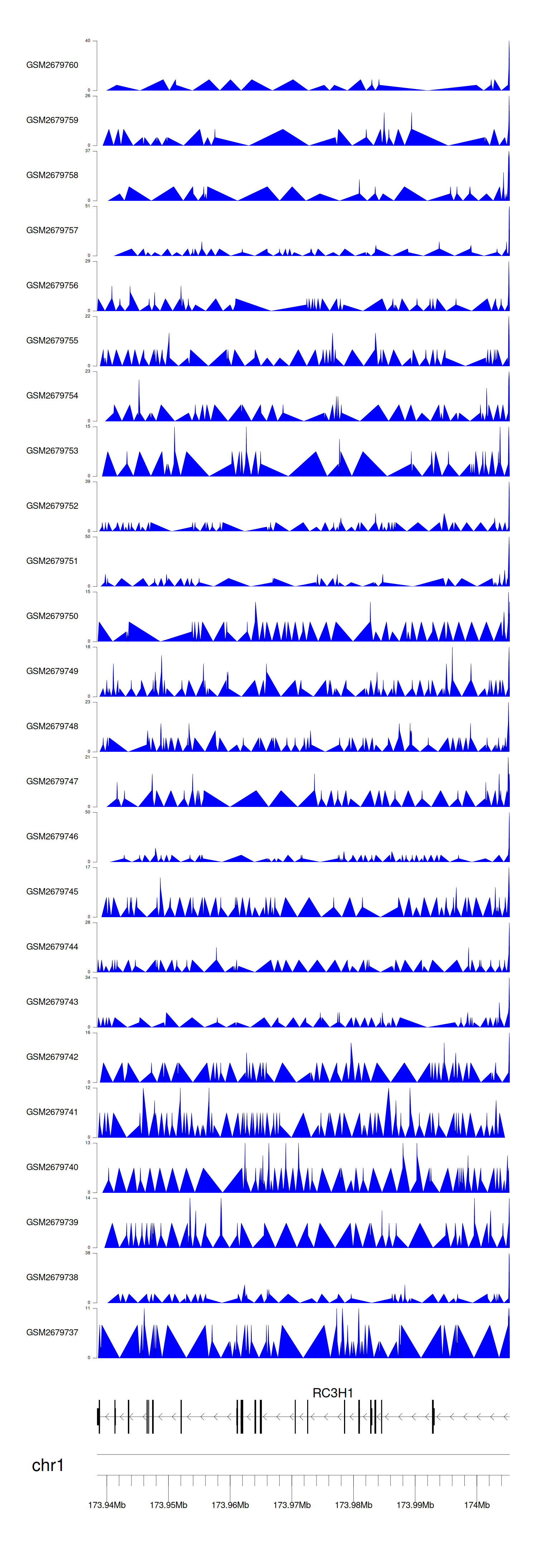 > Dataset: GSE30738 - RC3H1 peak across samples