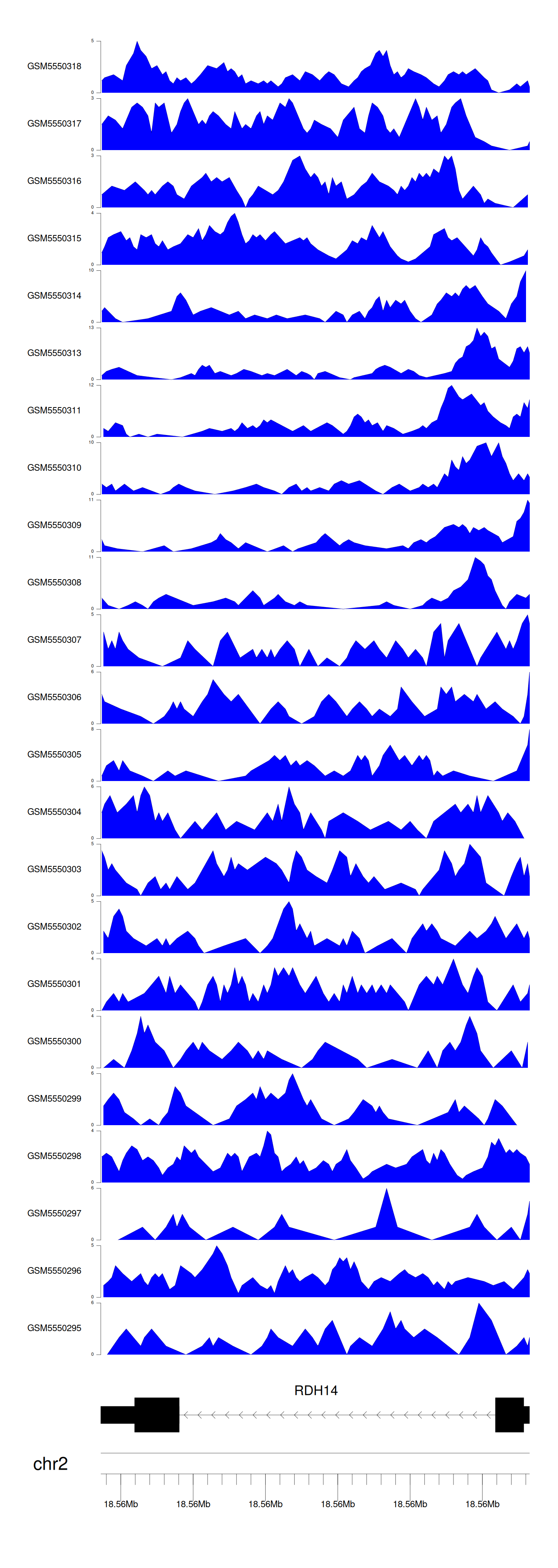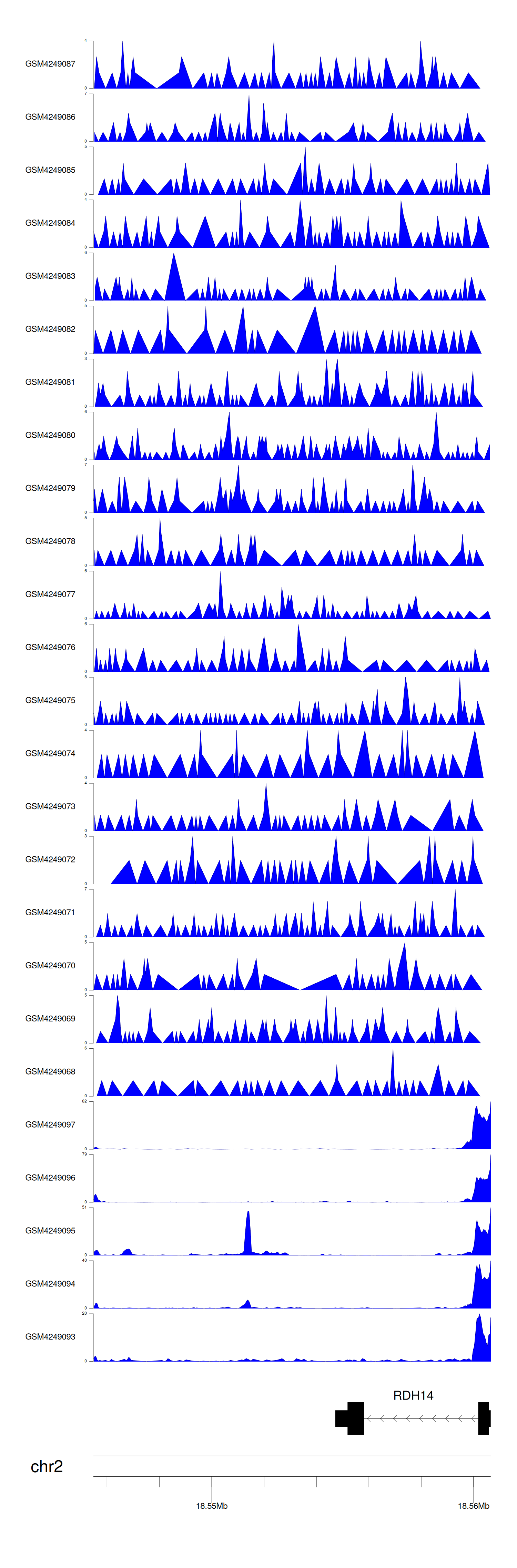 > Dataset: GSE143026 - RDH14 peak across samples