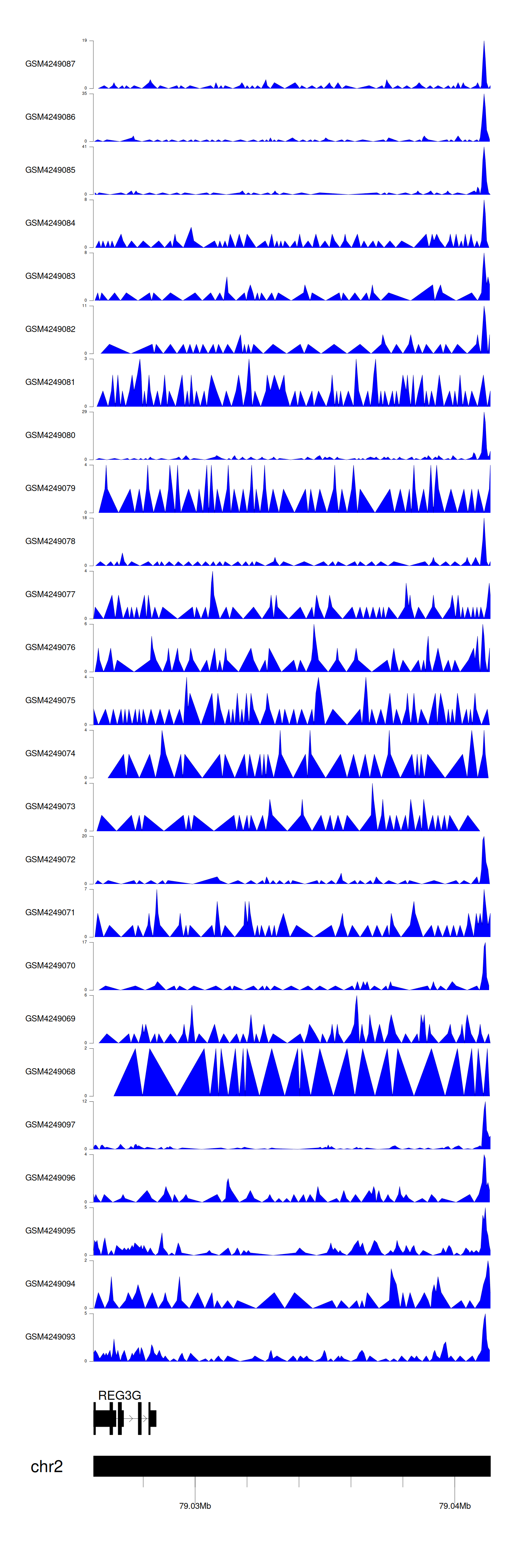 > Dataset: GSE143026 - REG3G peak across samples