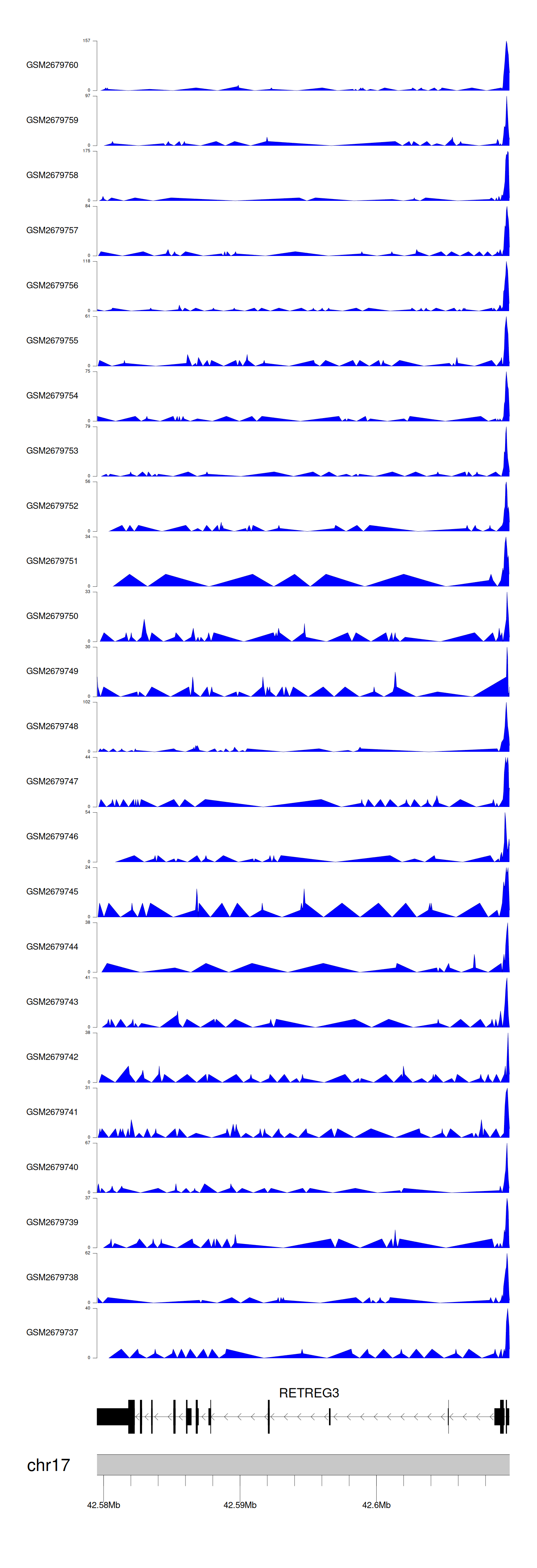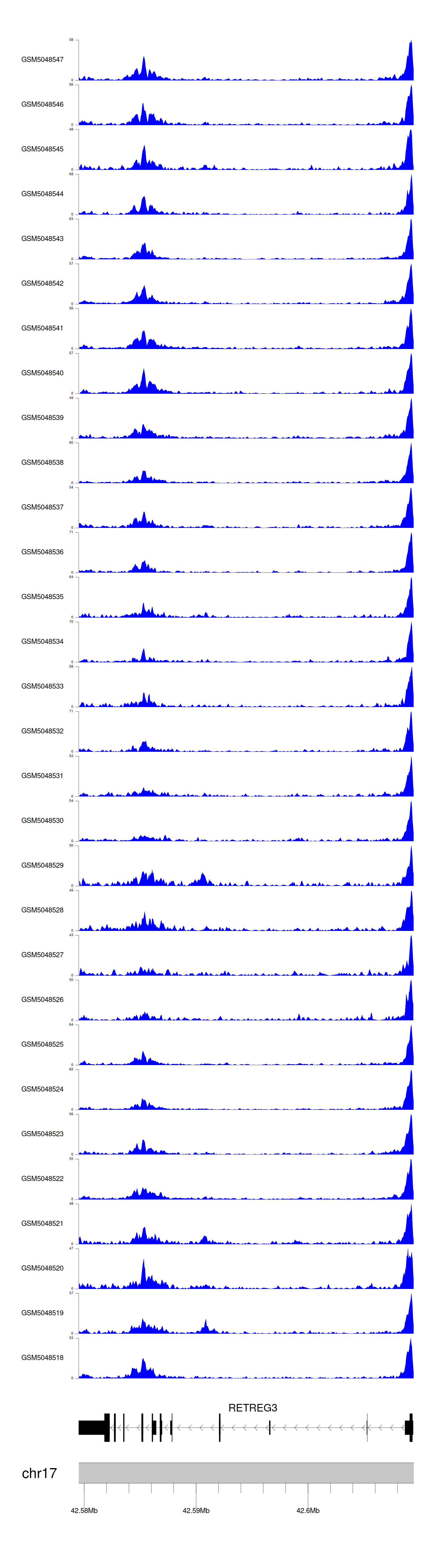 > Dataset: GSE100376 - RETREG3 peak across samples
