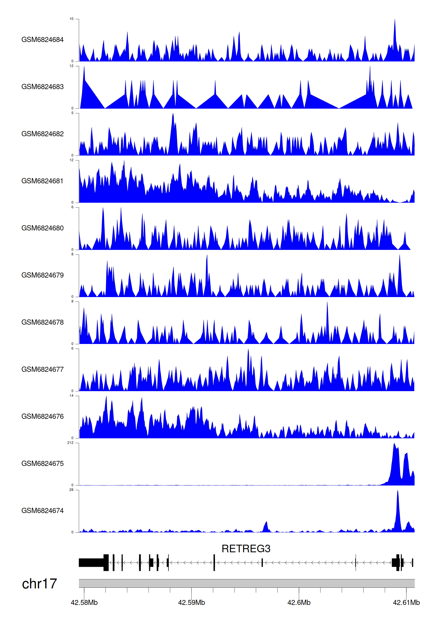 > Dataset: GSE165705 - RETREG3 peak across samples