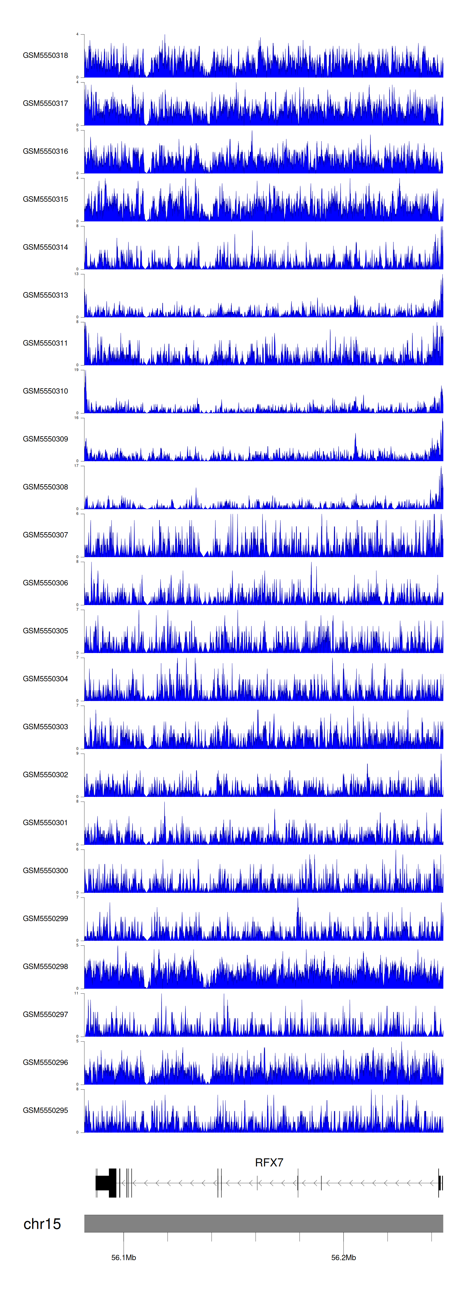 > Dataset: GSE183048 - RFX7 peak across samples