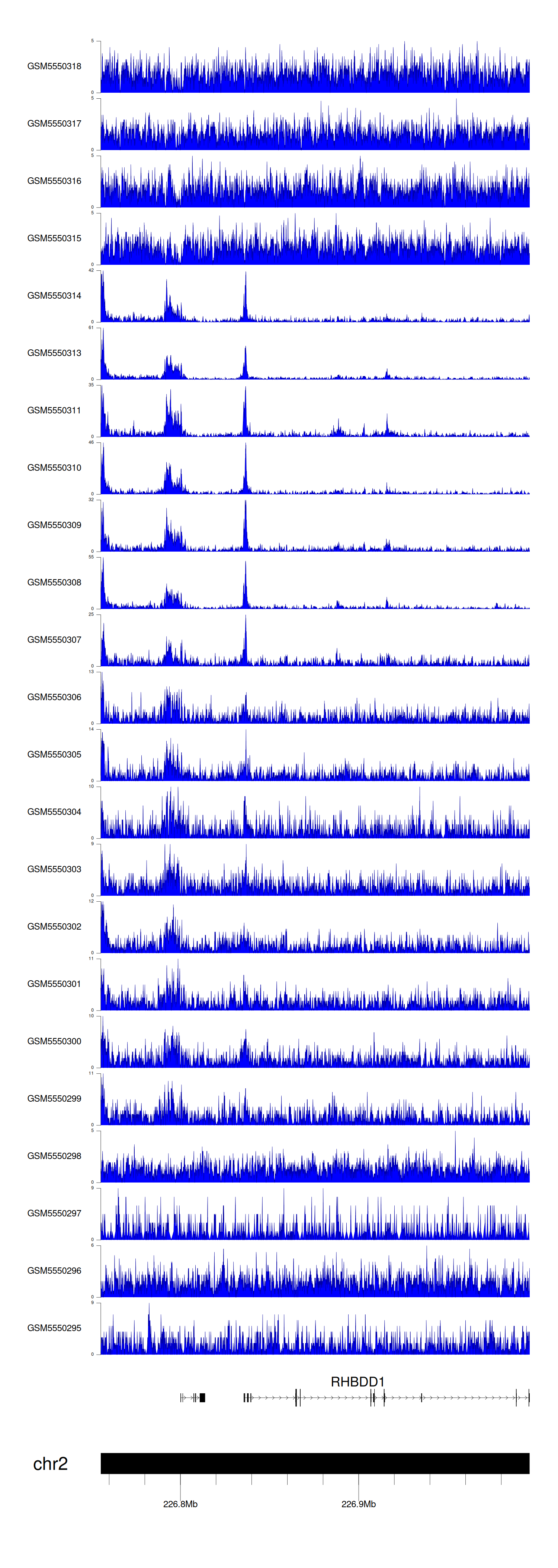 > Dataset: GSE143026 - RHBDD1 peak across samples