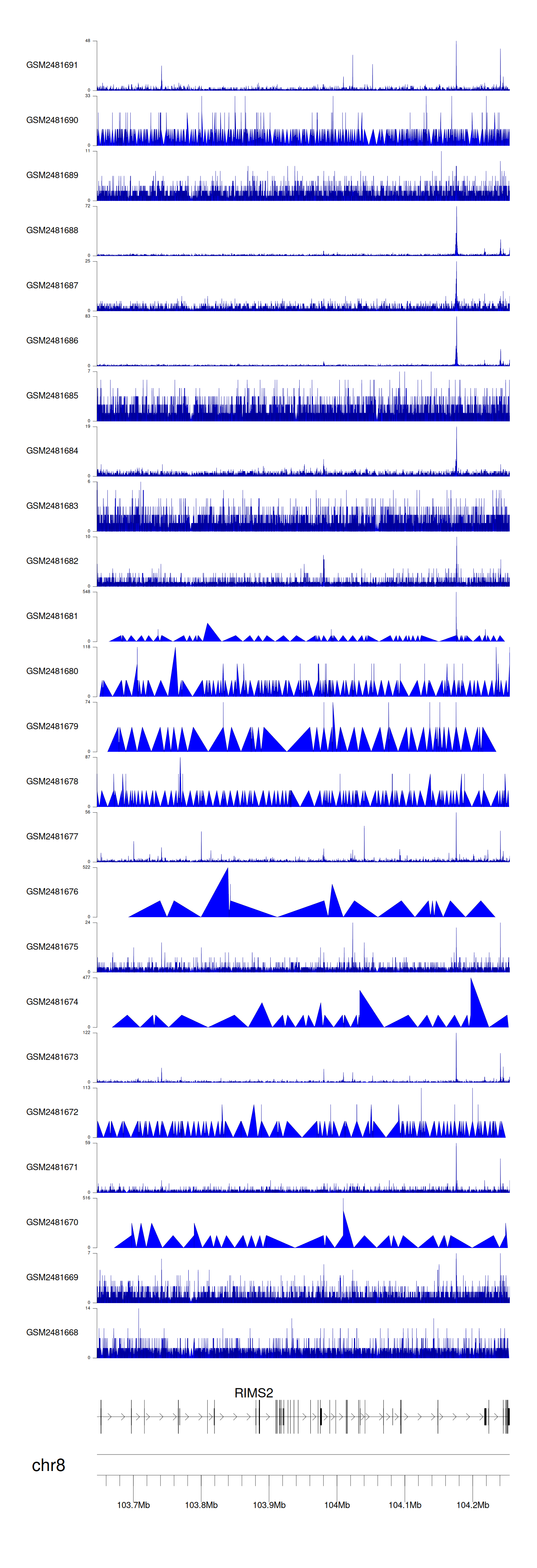 > Dataset: GSE94732 - RIMS2 peak across samples