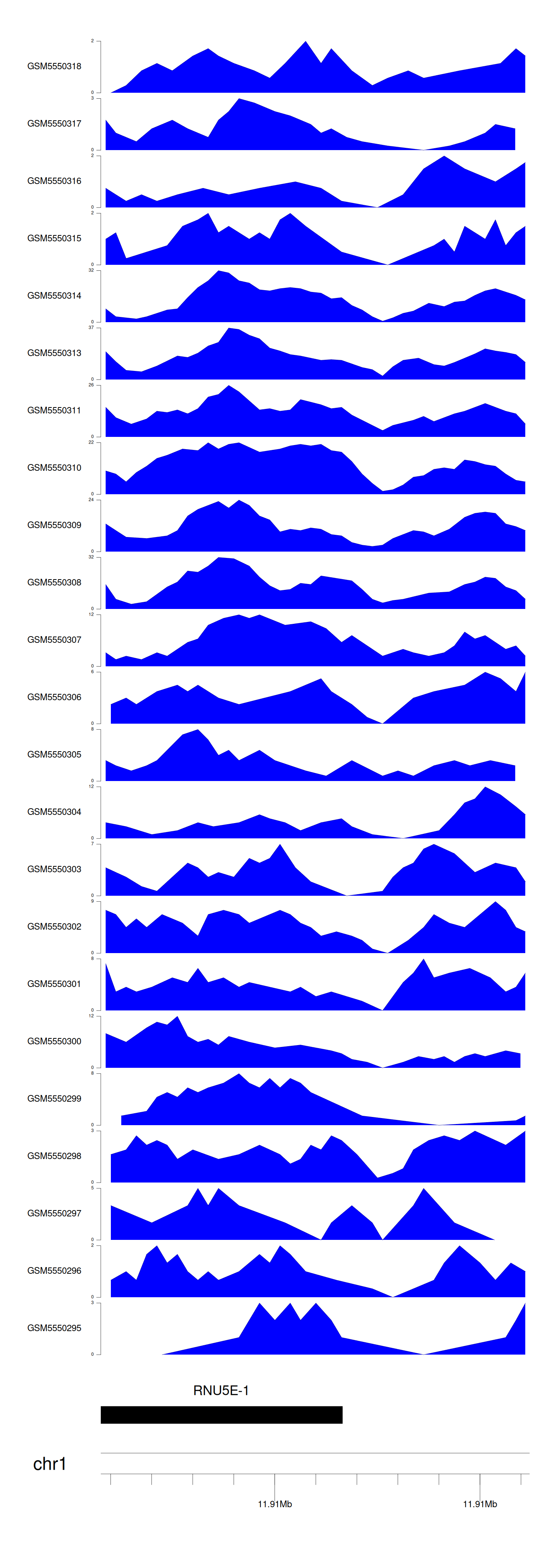 > Dataset: GSE143026 - RNU5E-1 peak across samples