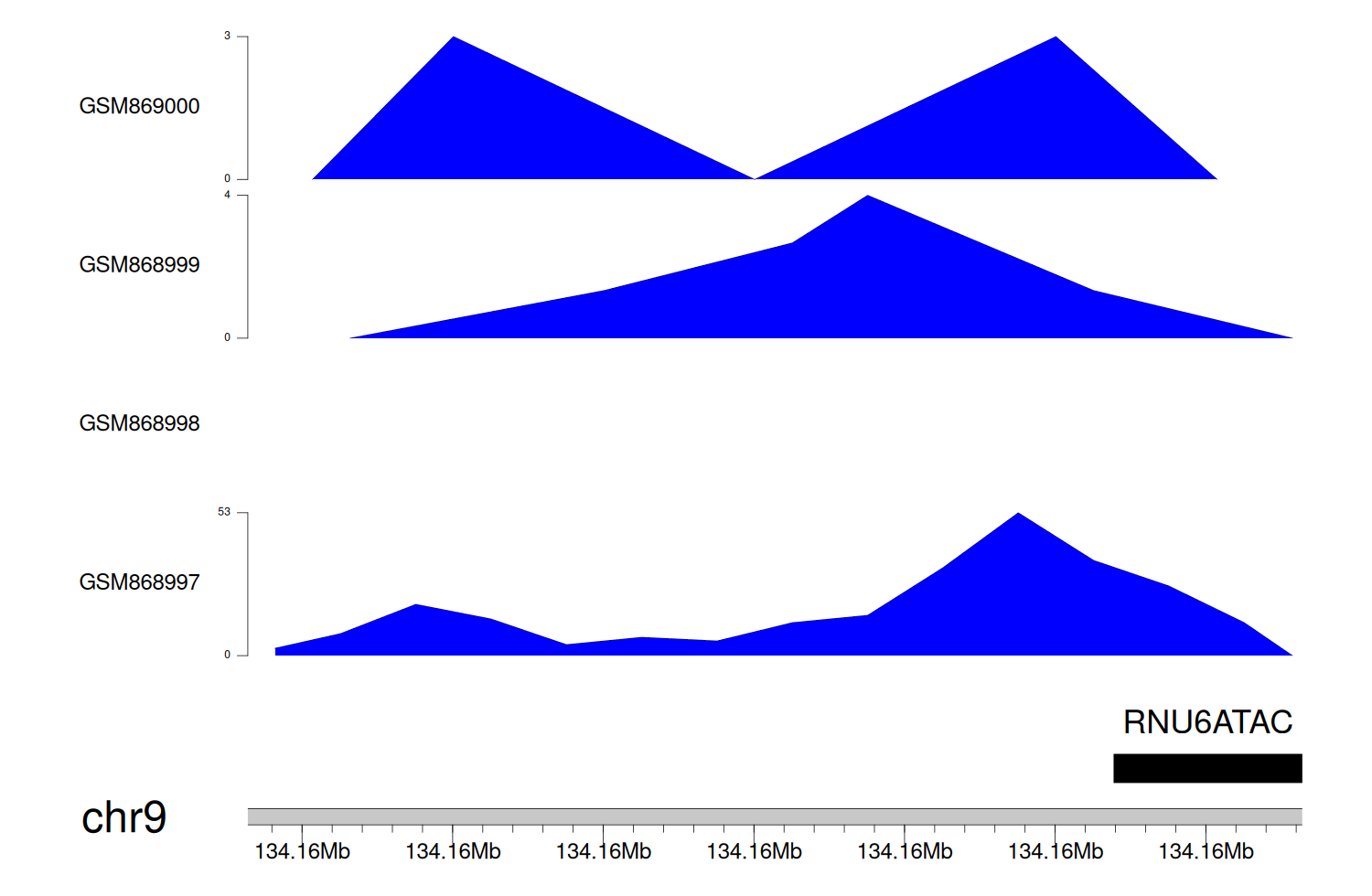 > Dataset: GSE131257 - RNU6ATAC peak across samples