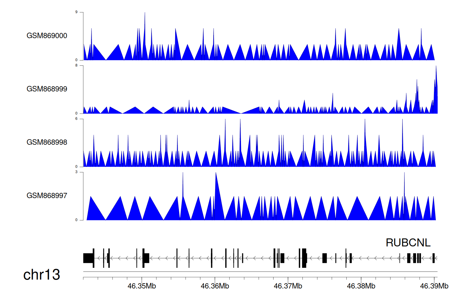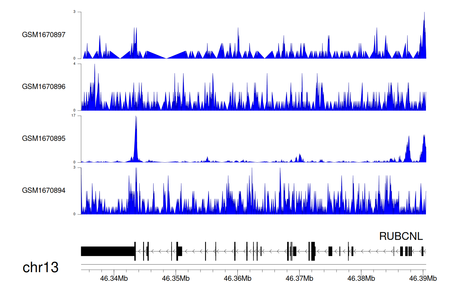 > Dataset: GSE68402 - RUBCNL peak across samples