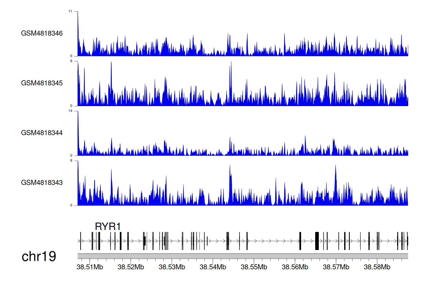 This gene encodes a ryanodine receptor found in skeletal muscle. The encoded protein functions as a calcium release channel in the sarcoplasmic reticulum but also serves to connect the sarcoplasmic reticulum and transverse tubule. Mutations in this gene are associated with malignant hyperthermia susceptibility, central core disease, and minicore myopathy with external ophthalmoplegia. Alternatively spliced transcripts encoding different isoforms have been described. [provided by RefSeq, Jul 2008] |