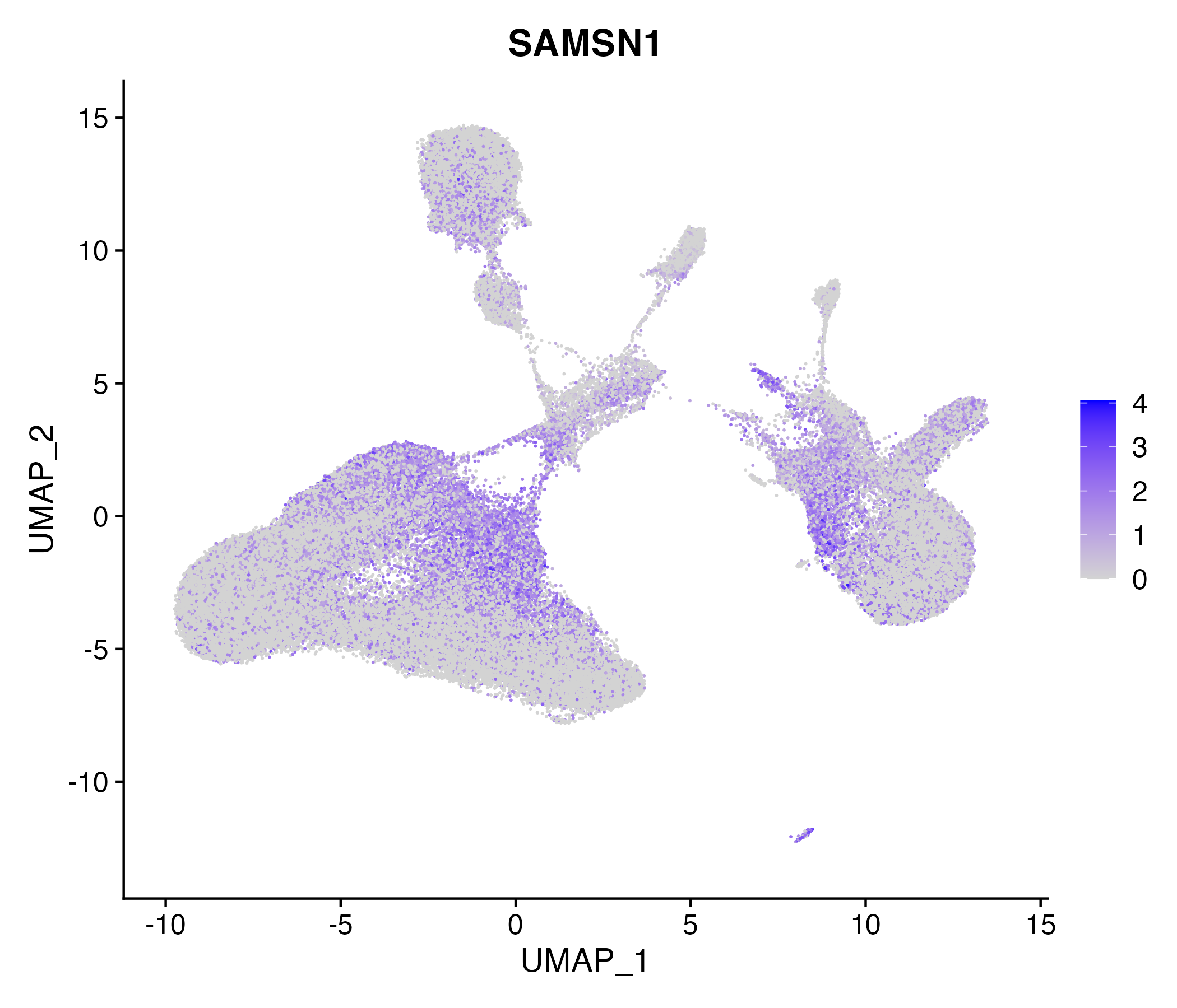 Summary SAMSN1 is a member of a novel gene family of putative adaptors and scaffold proteins containing SH3 and SAM (sterile alpha motif) domains (Claudio et al., 2001 [PubMed 11536050]).[supplied by OMIM, Mar 2008]