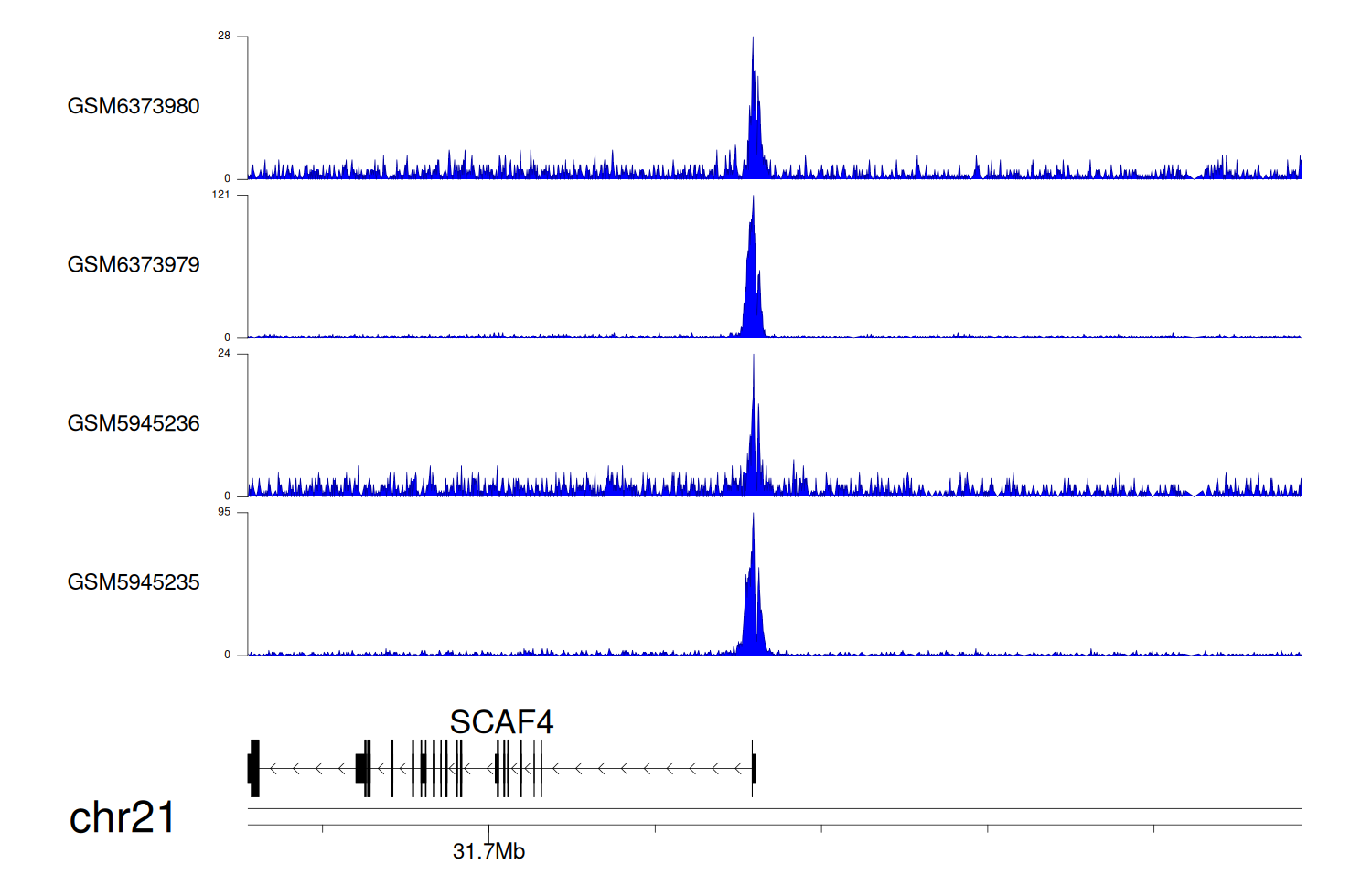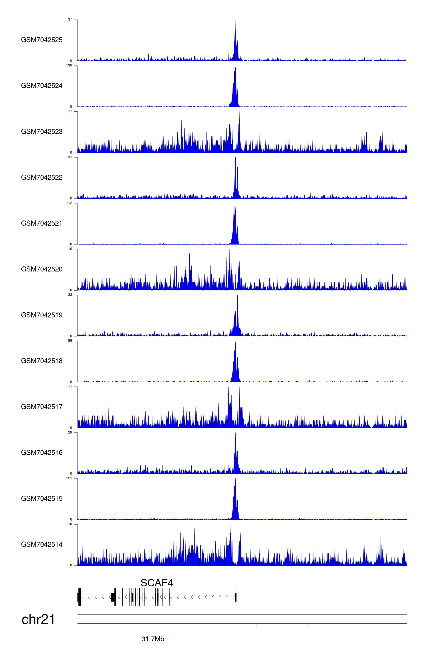 > Dataset: GSE225248 - SCAF4 peak across samples