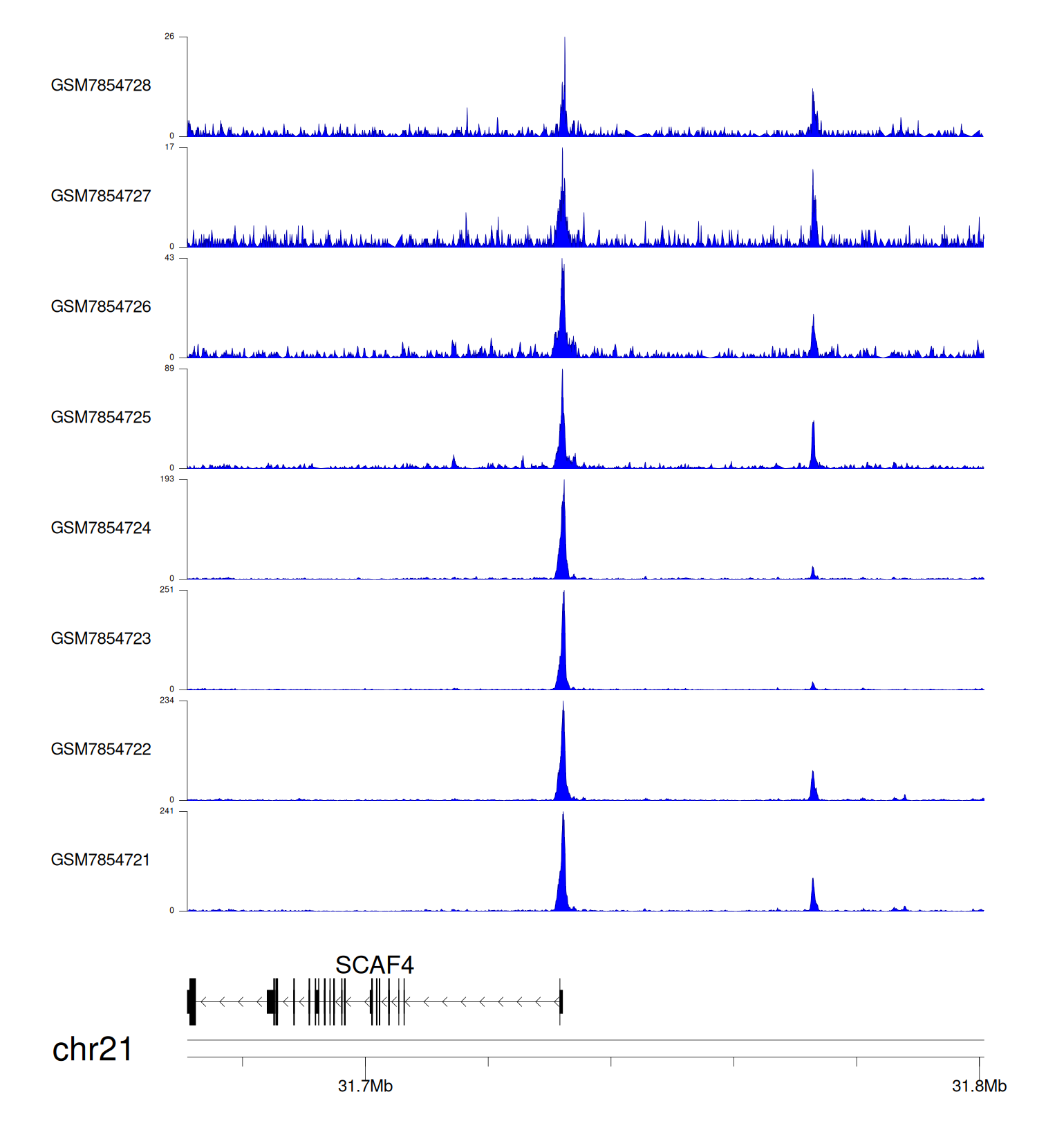 > Dataset: GSE198334 - SCAF4 peak across samples