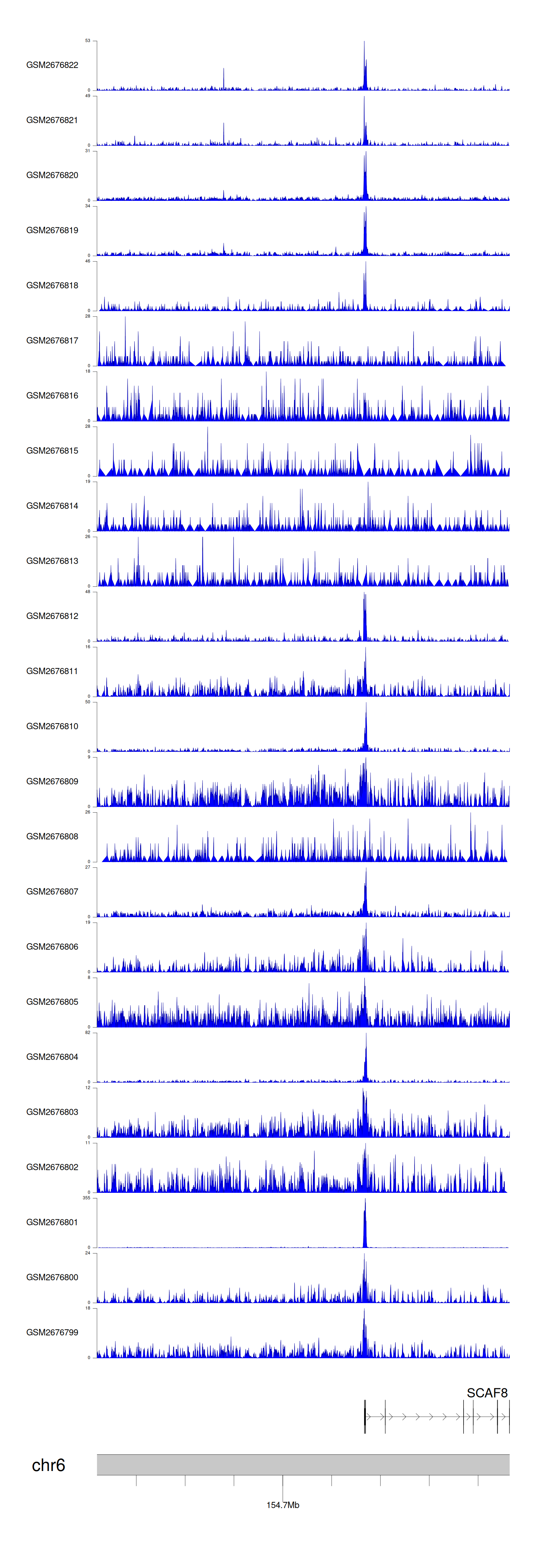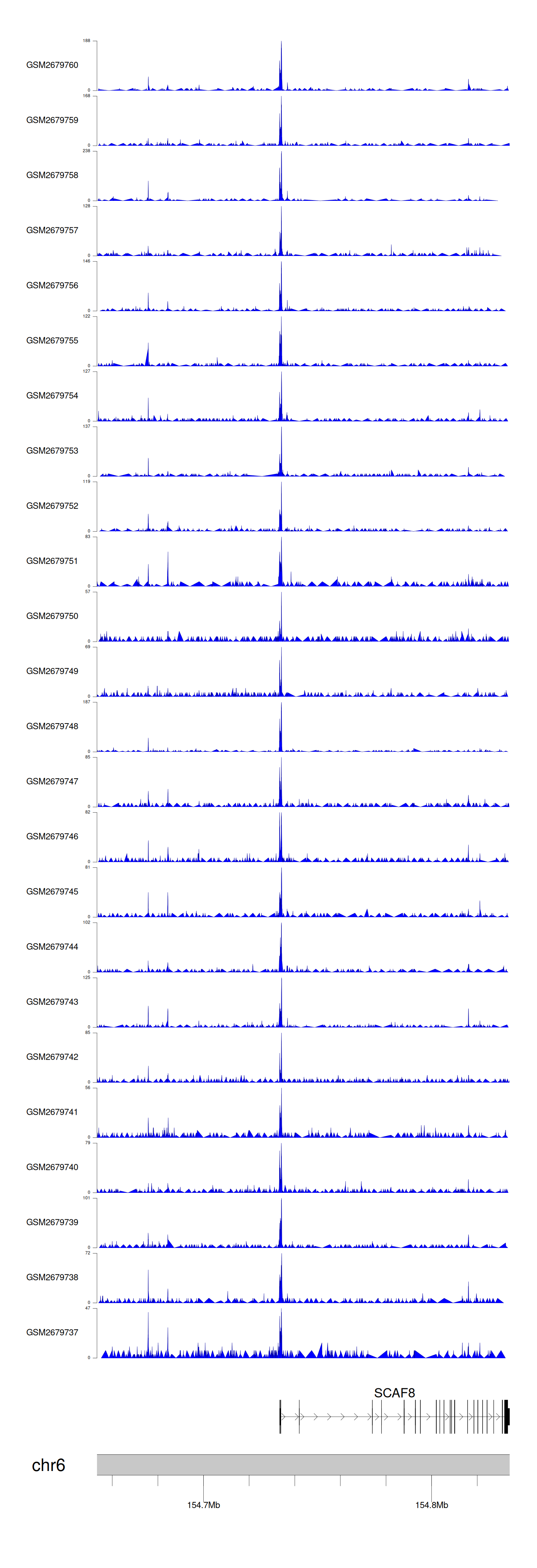 > Dataset: GSE100376 - SCAF8 peak across samples