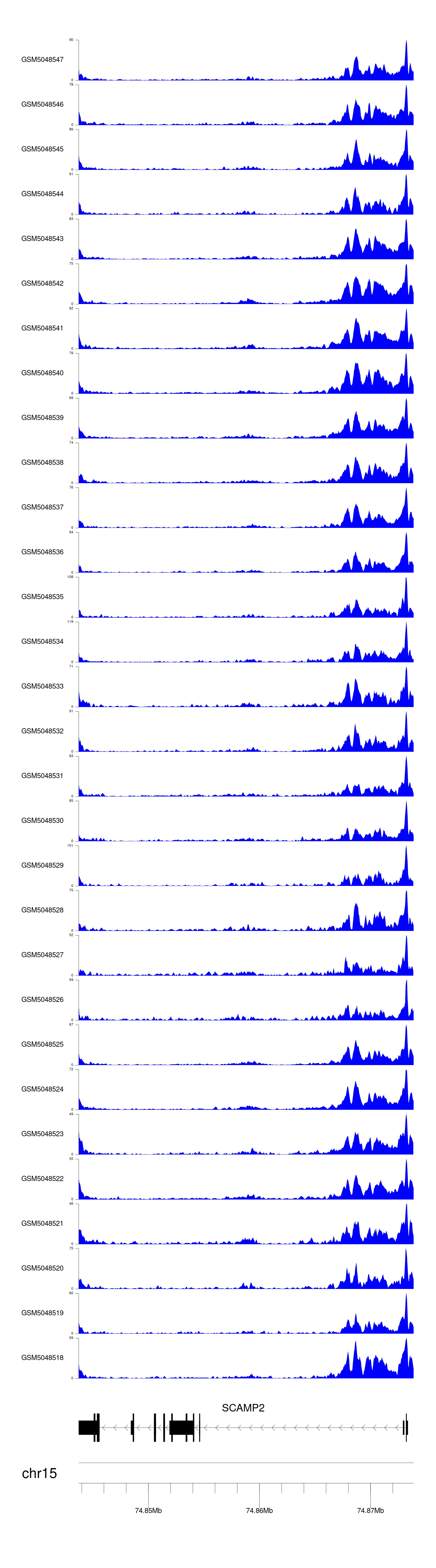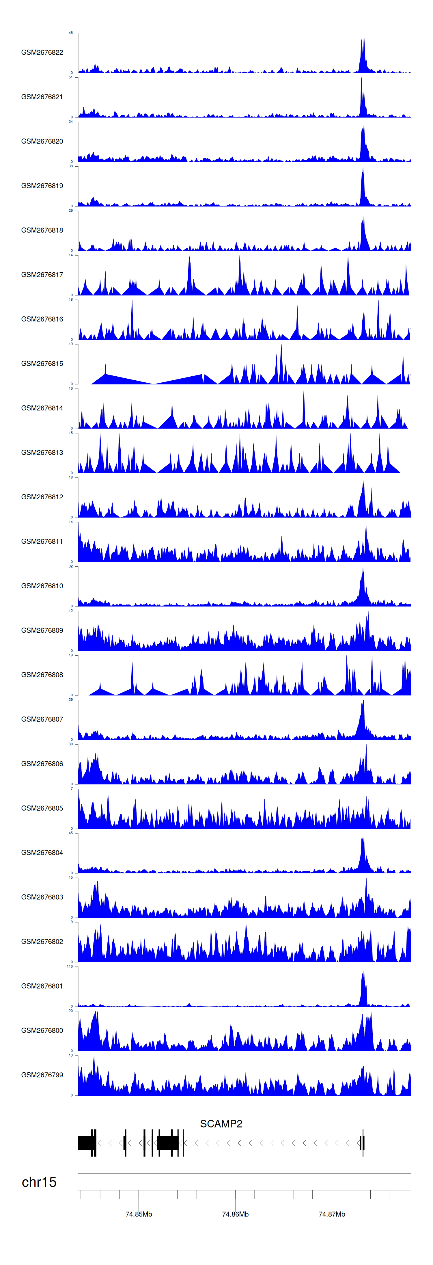 > Dataset: GSE165703 - SCAMP2 peak across samples