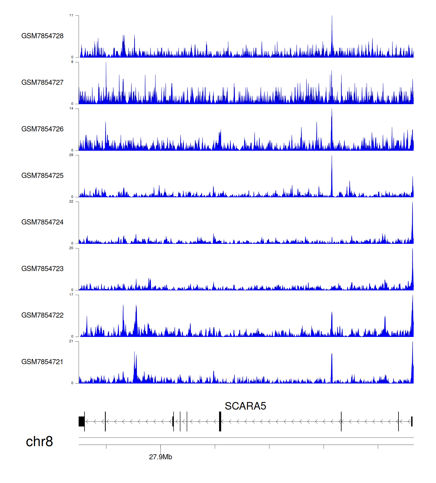 > Dataset: GSE198334 - SCARA5 peak across samples