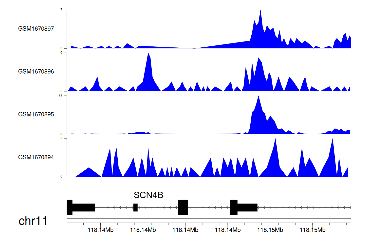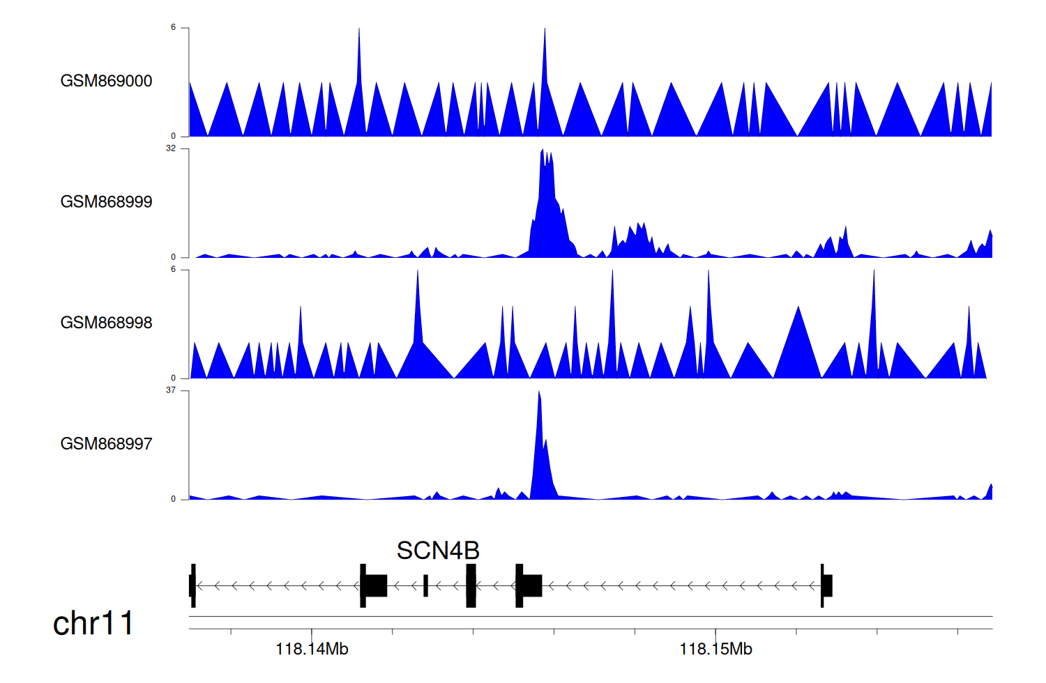 > Dataset: GSE68402 - SCN4B peak across samples