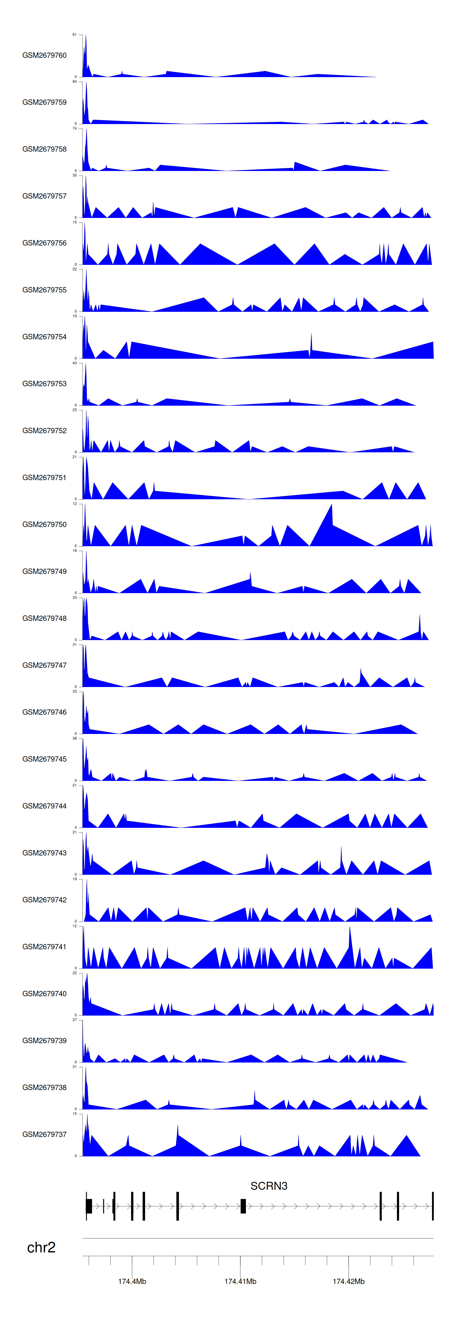 > Dataset: GSE30738 - SCRN3 peak across samples