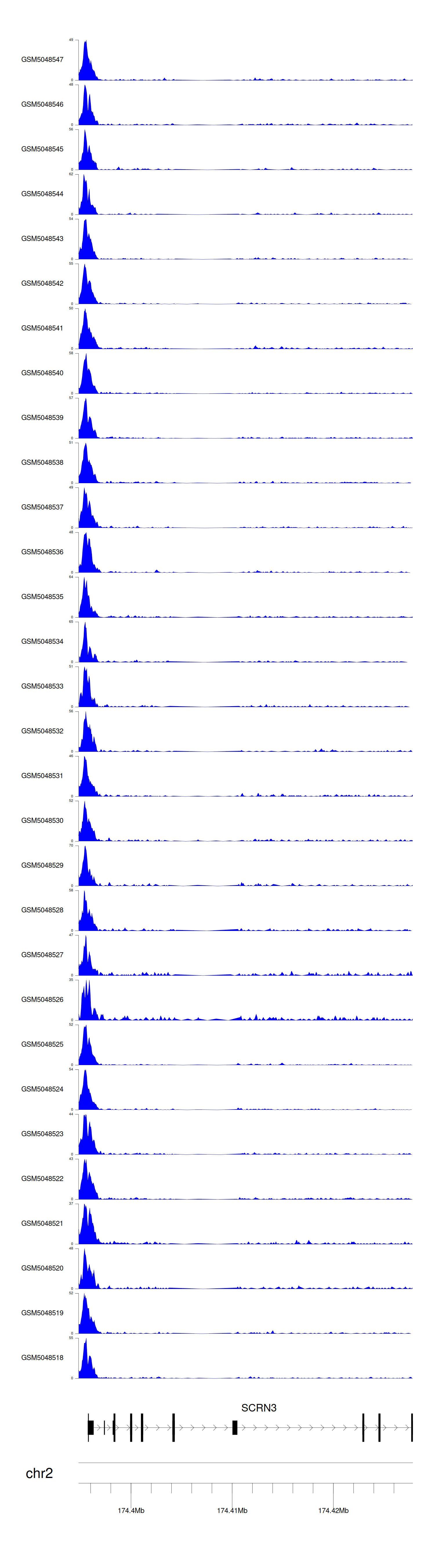 > Dataset: GSE220859 - SCRN3 peak across samples