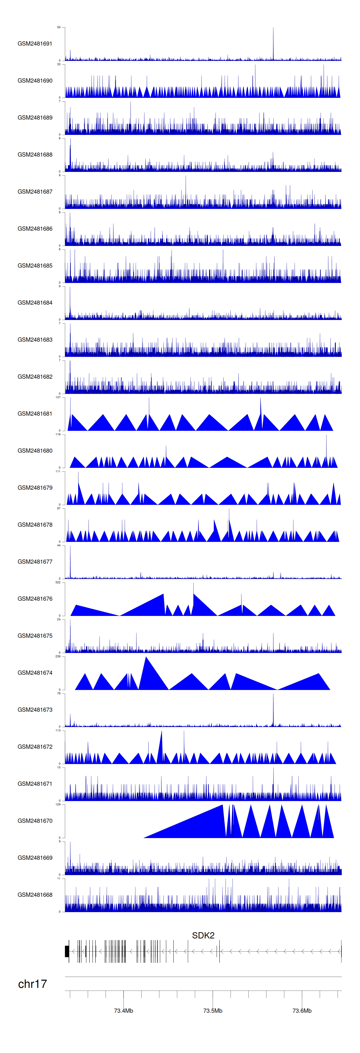 When the gene can detect a peak in the dataset, a peak plot will be displayed.