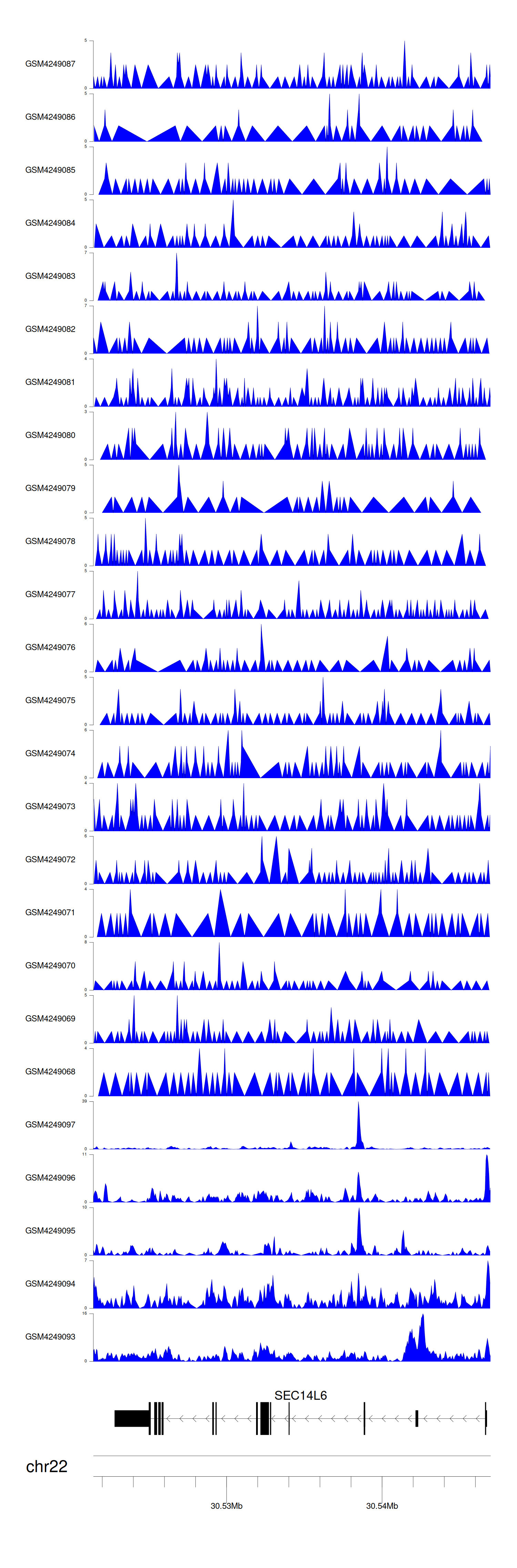 > Dataset: GSE143026 - SEC14L6 peak across samples