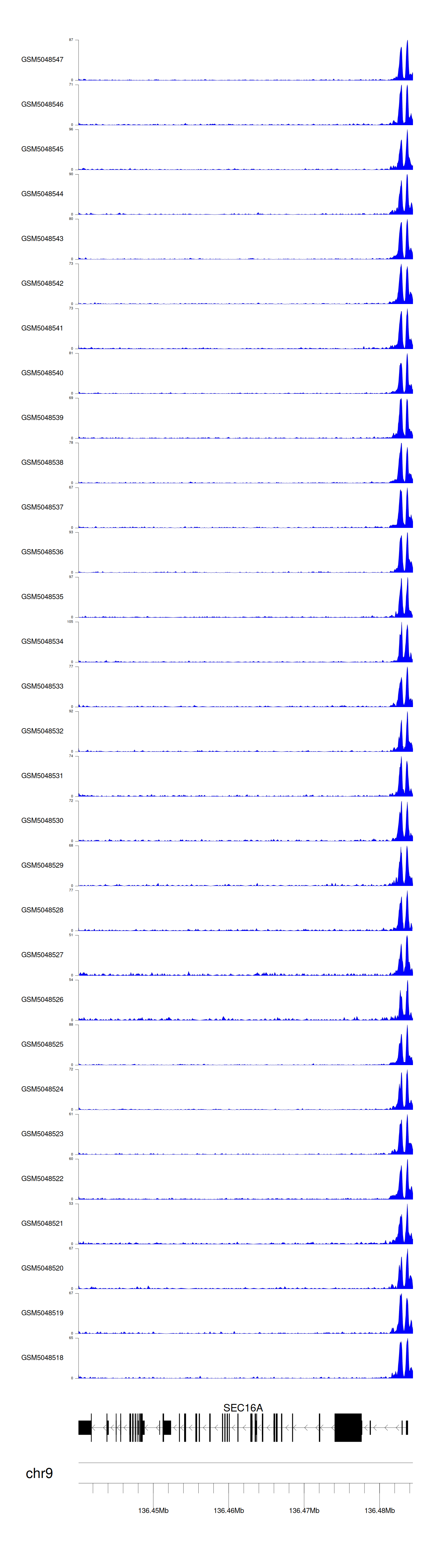 > Dataset: GSE165703 - SEC16A peak across samples