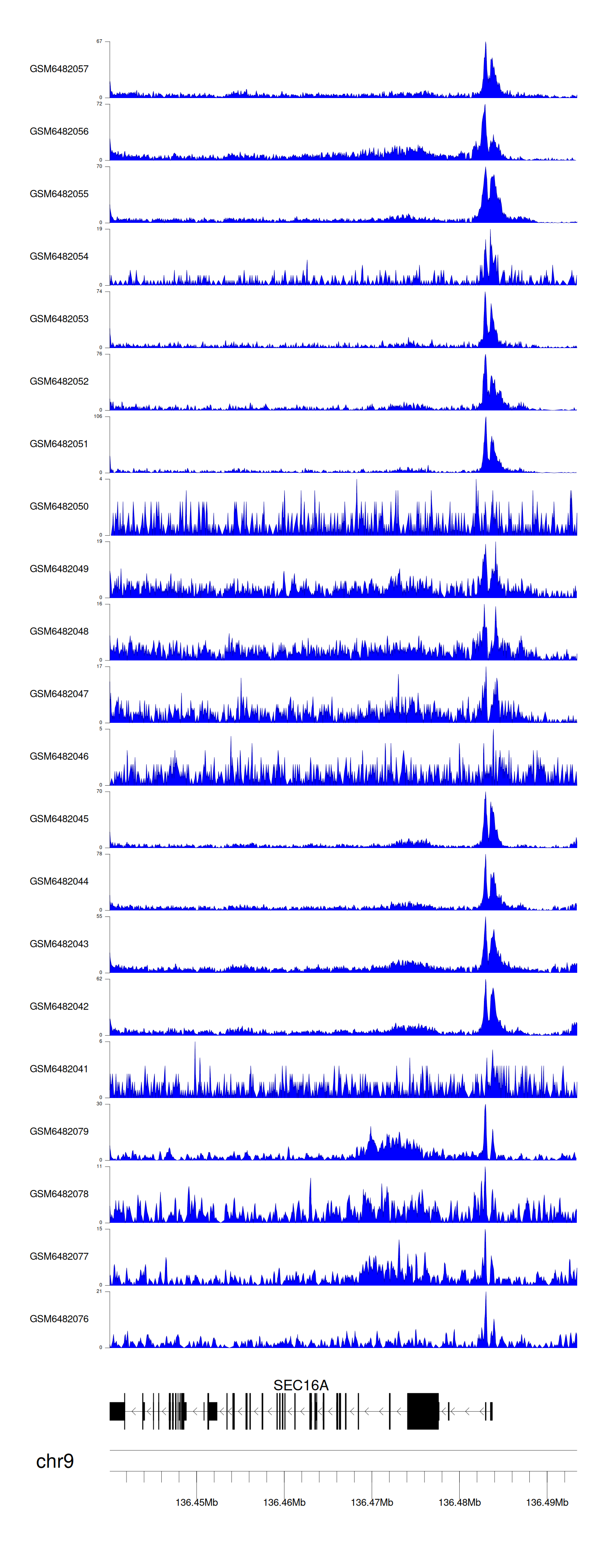 > Dataset: GSE165705 - SEC16A peak across samples