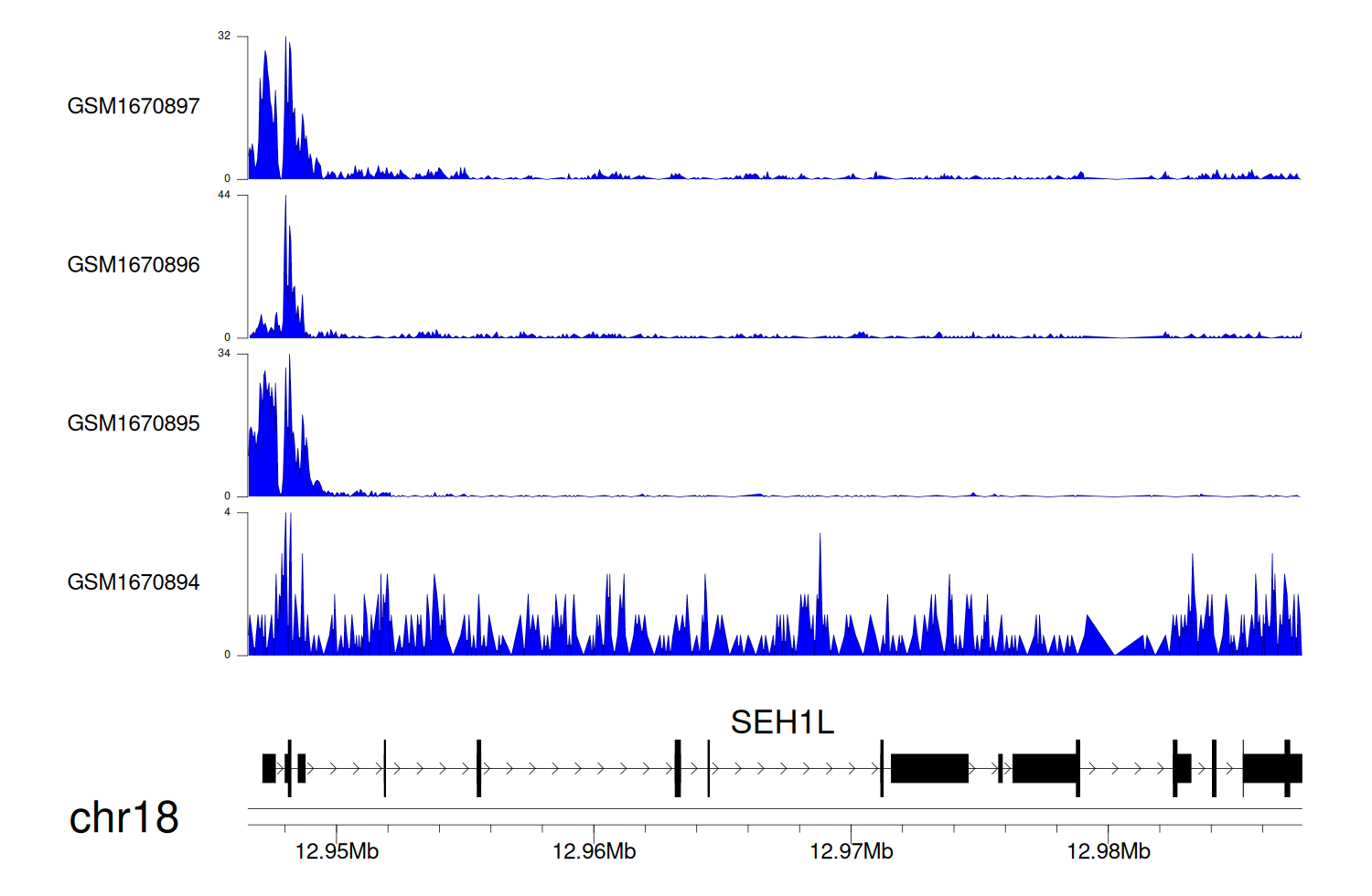 > Dataset: GSE100400 - SEH1L peak across samples