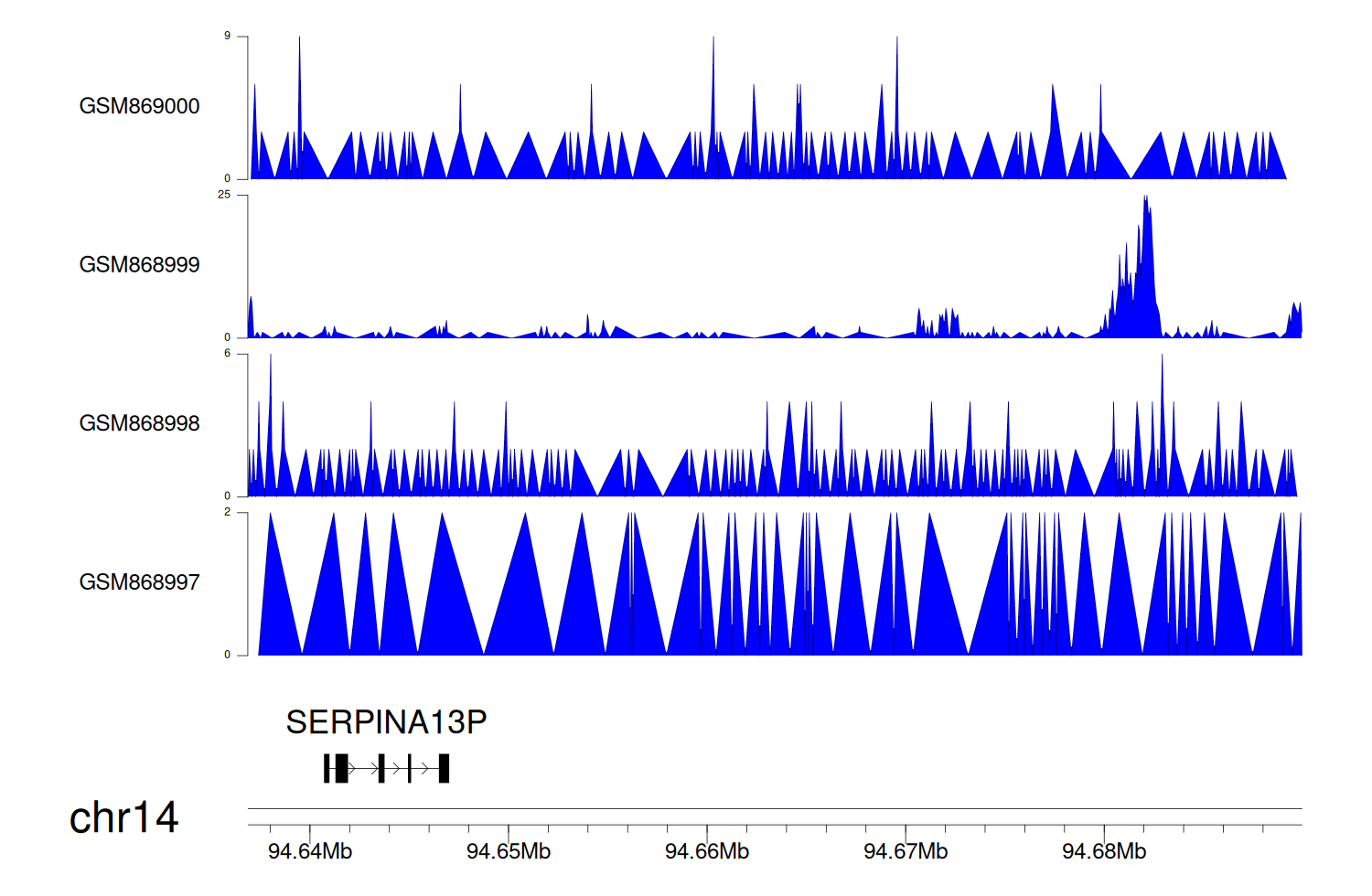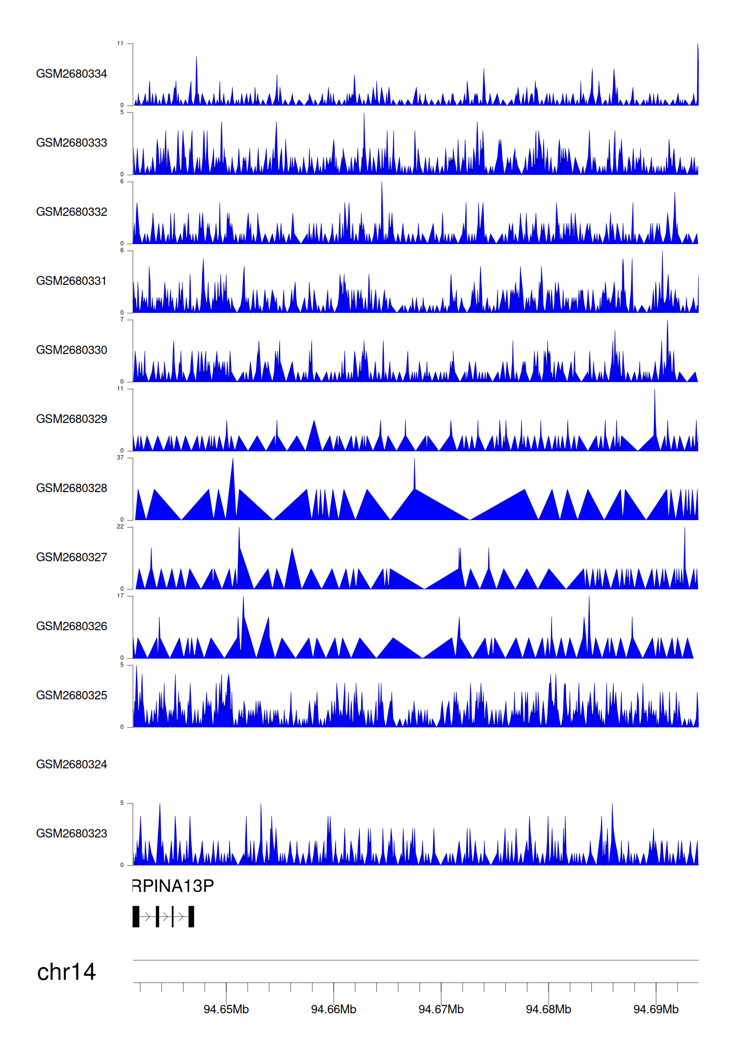 > Dataset: GSE100400 - SERPINA13P peak across samples