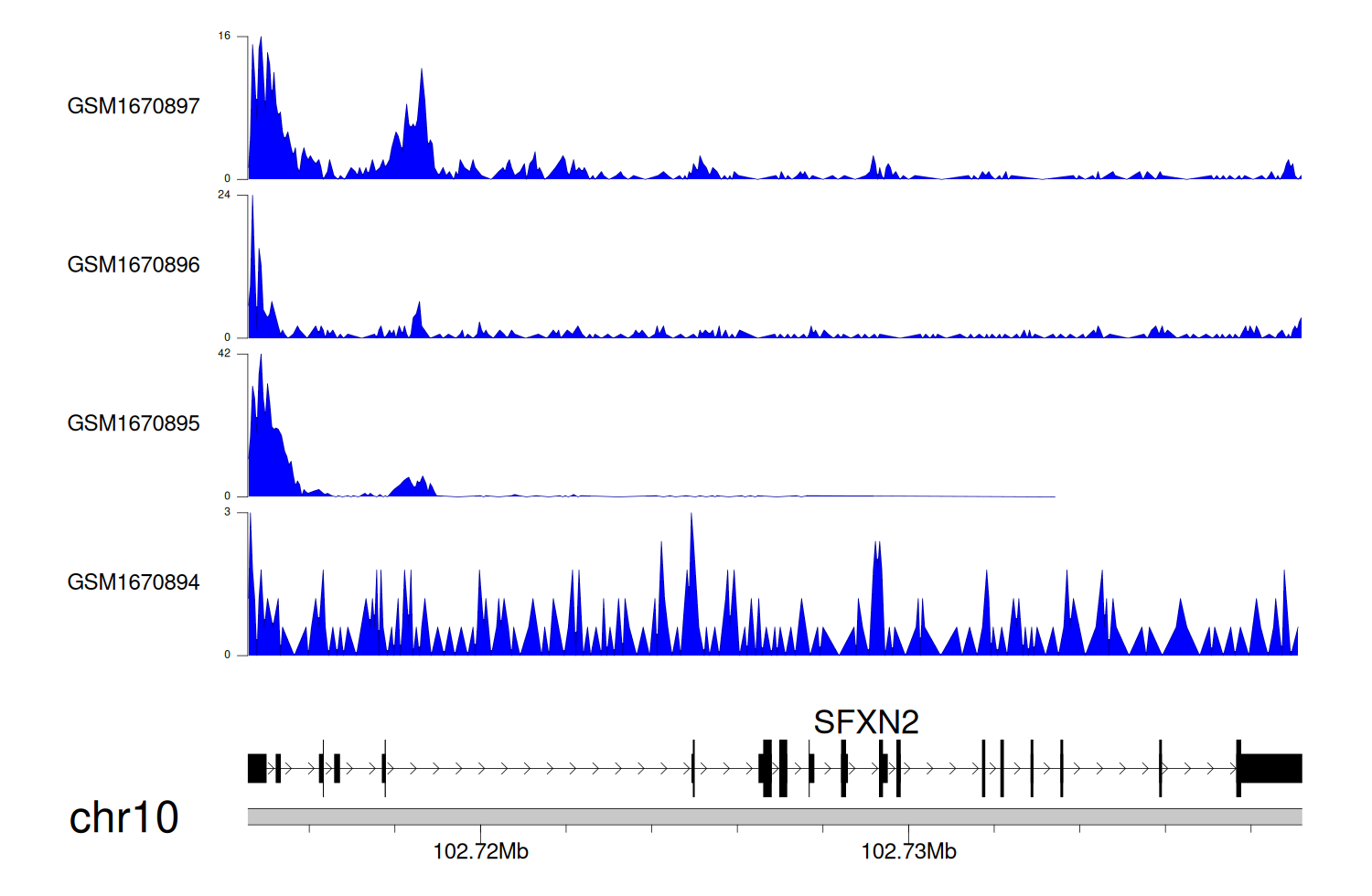 > Dataset: GSE64877 - SFXN2 peak across samples