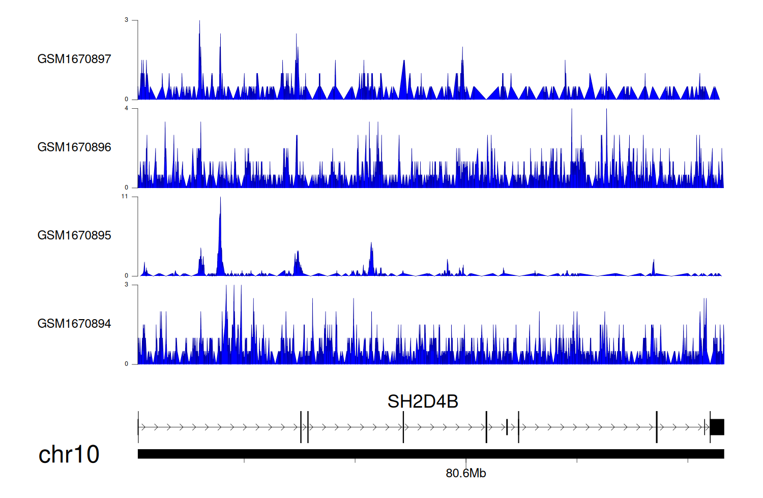 > Dataset: GSE68402 - SH2D4B peak across samples