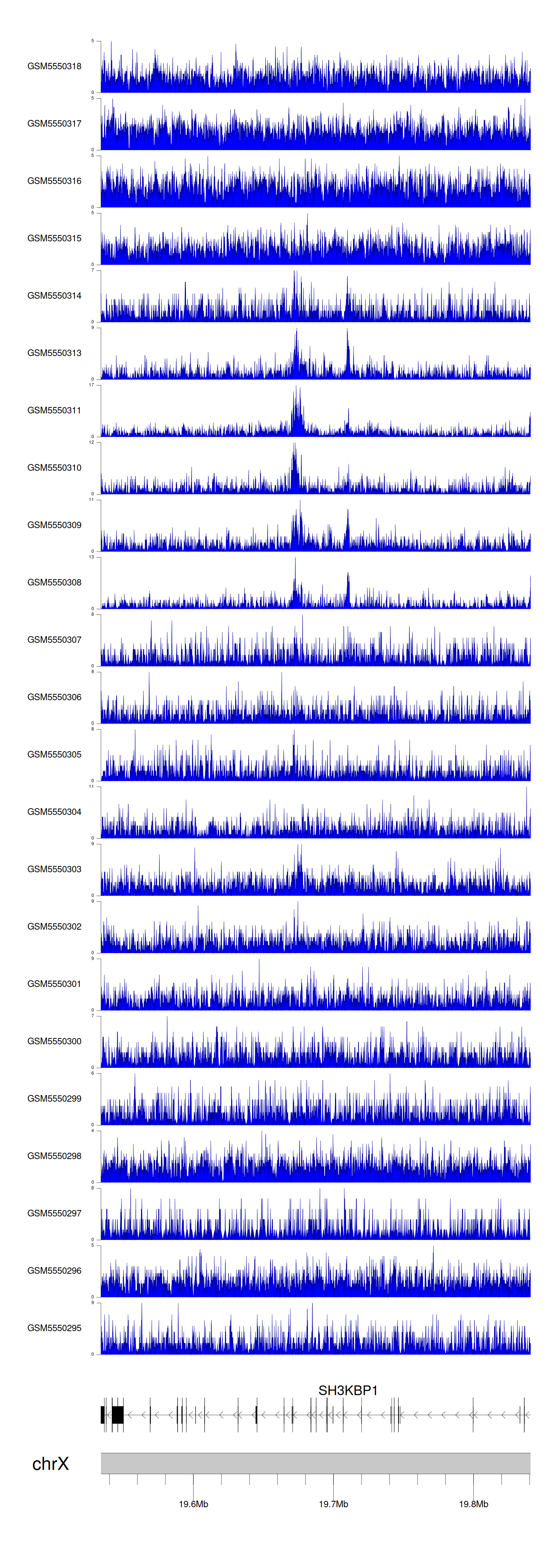 > Dataset: GSE143026 - SH3KBP1 peak across samples