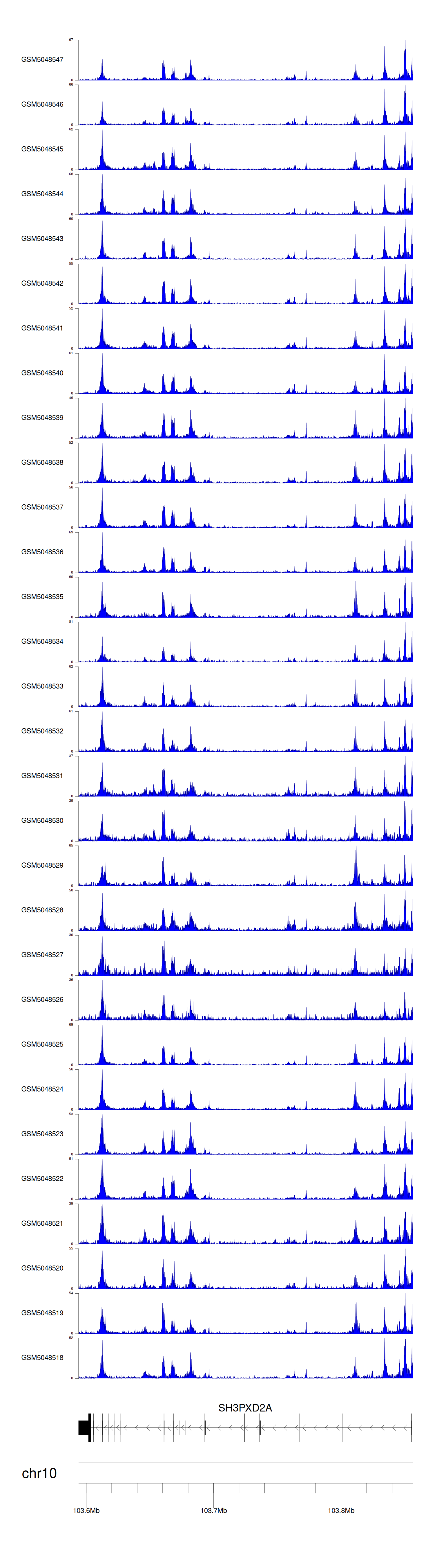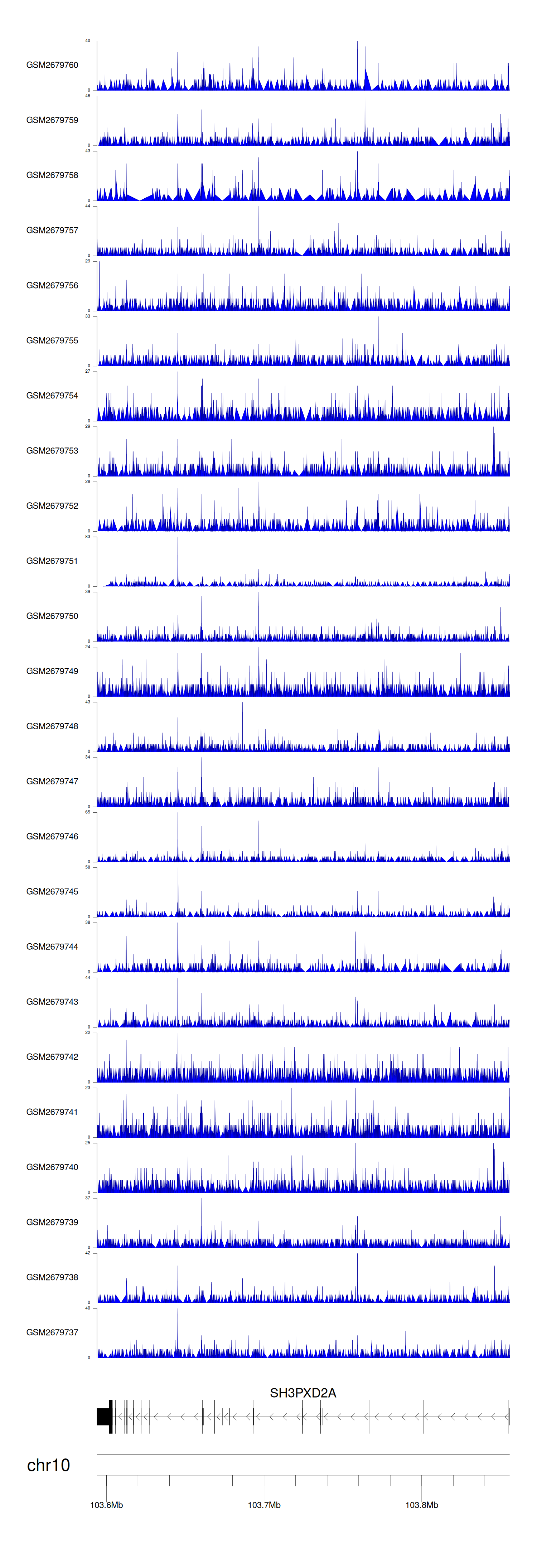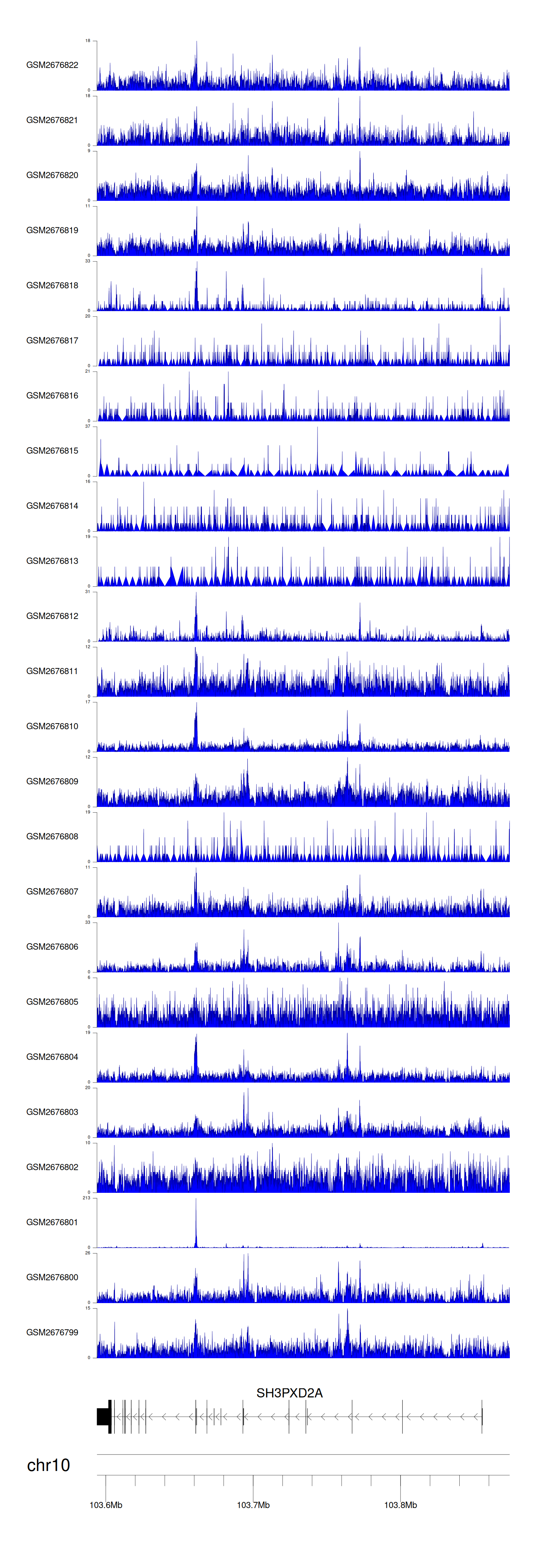 > Dataset: GSE100376 - SH3PXD2A peak across samples