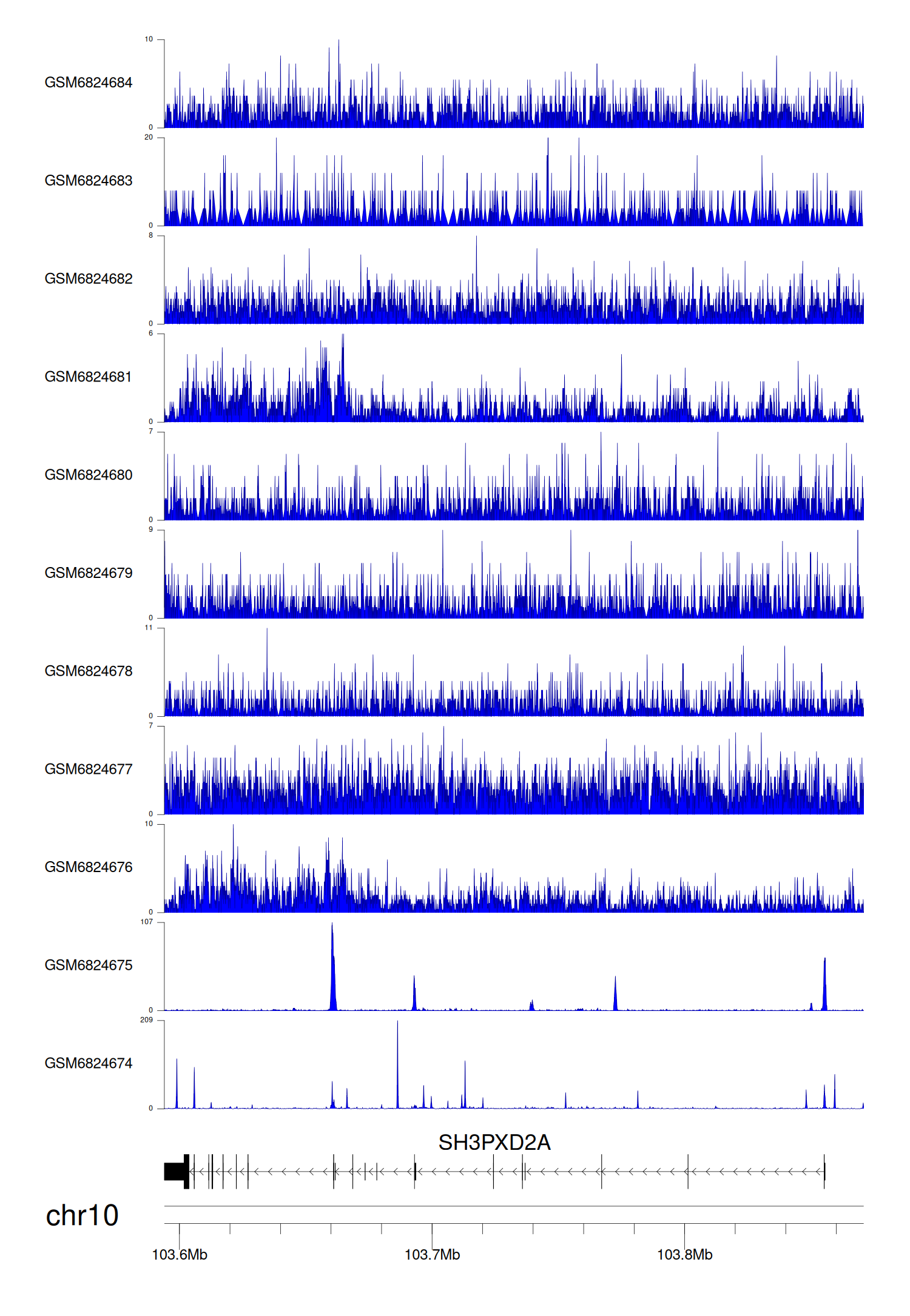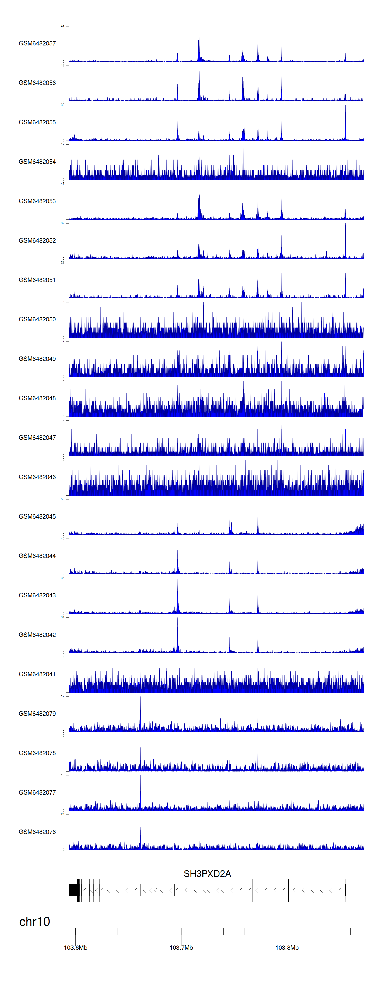 > Dataset: GSE165703 - SH3PXD2A peak across samples