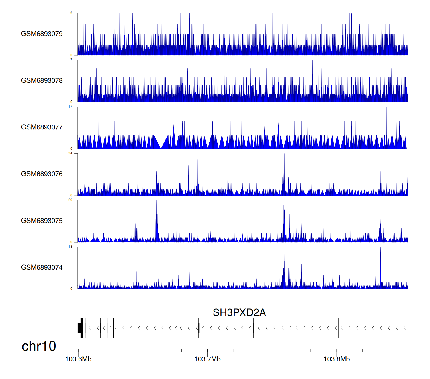 > Dataset: GSE211651 - SH3PXD2A peak across samples