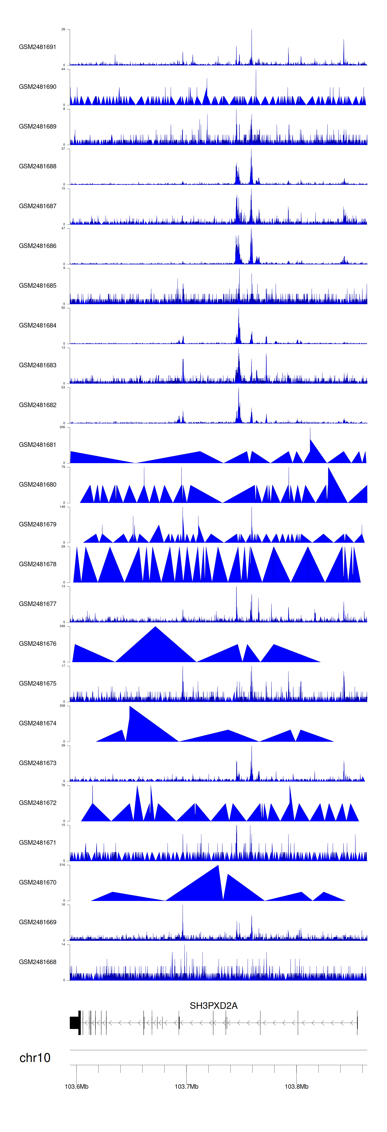 > Dataset: GSE94732 - SH3PXD2A peak across samples