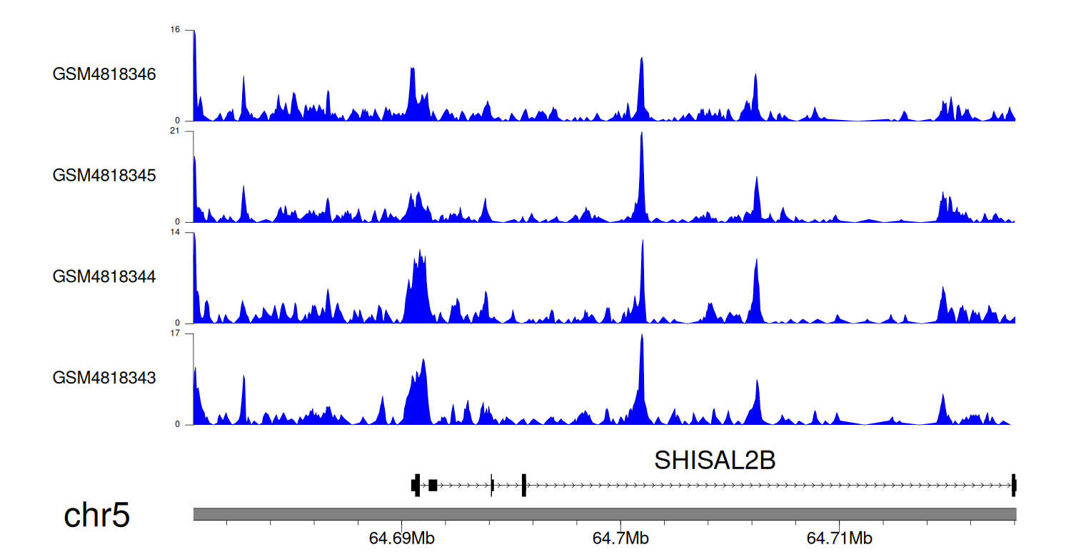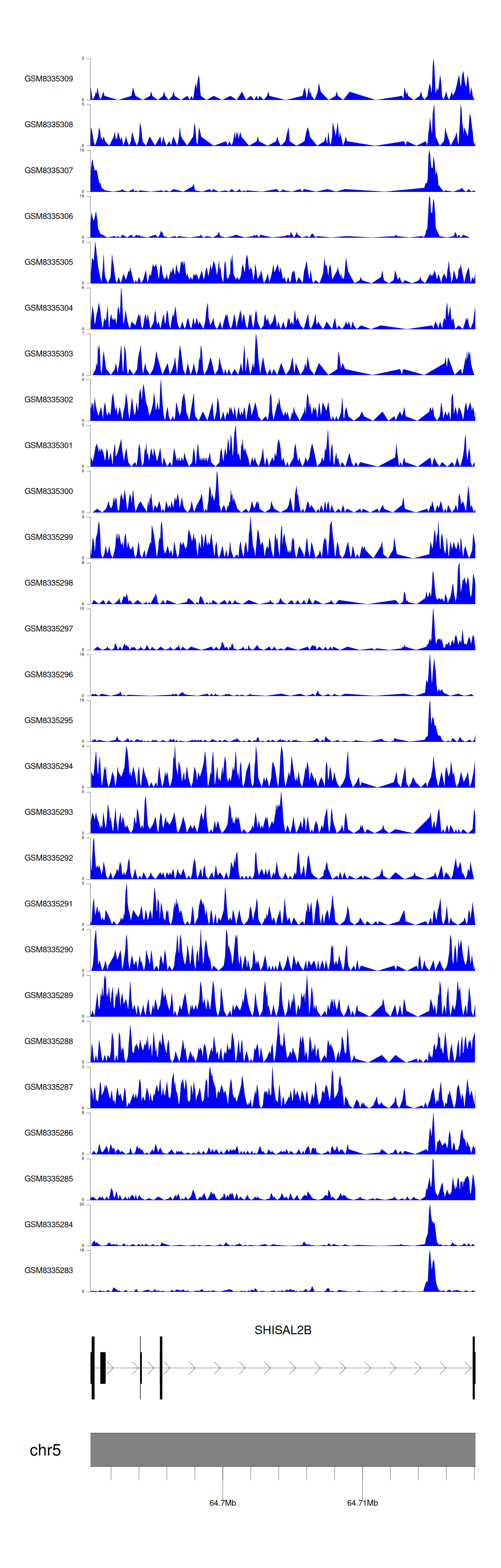 > Dataset: GSE131257 - SHISAL2B peak across samples