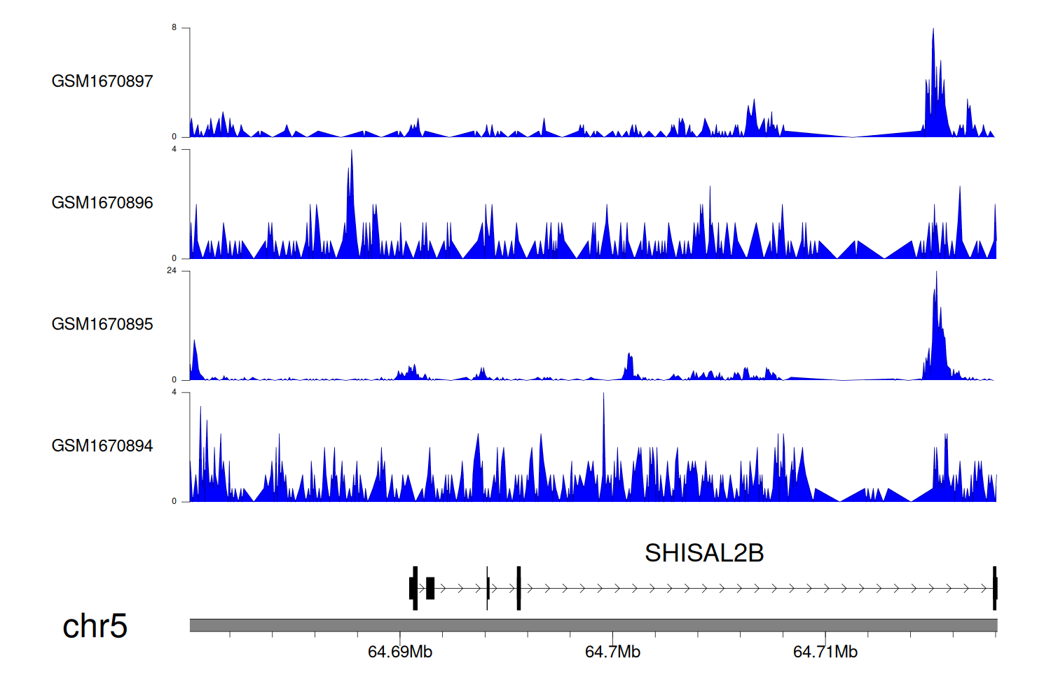 > Dataset: GSE68402 - SHISAL2B peak across samples