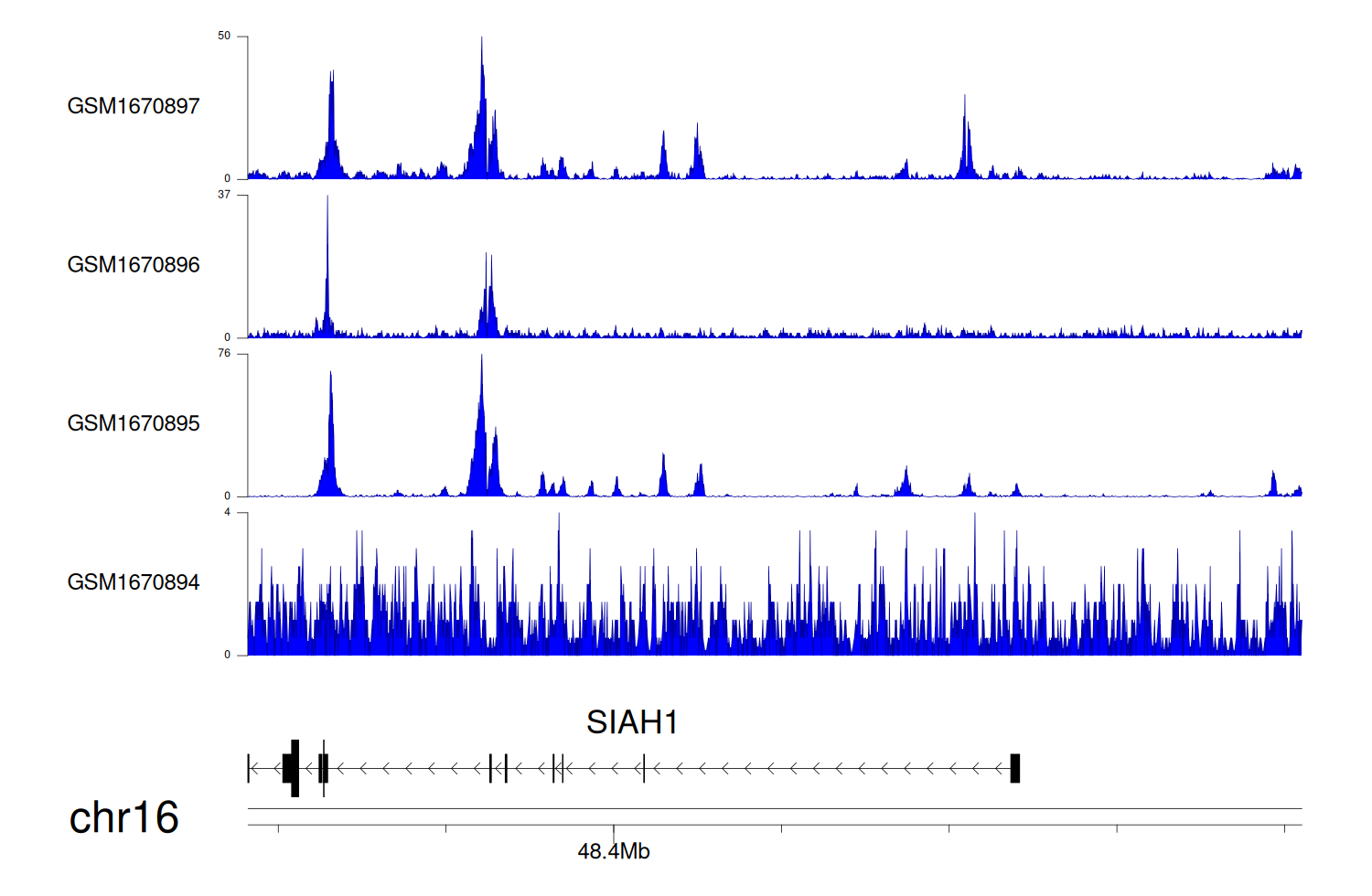 > Dataset: GSE68402 - SIAH1 peak across samples