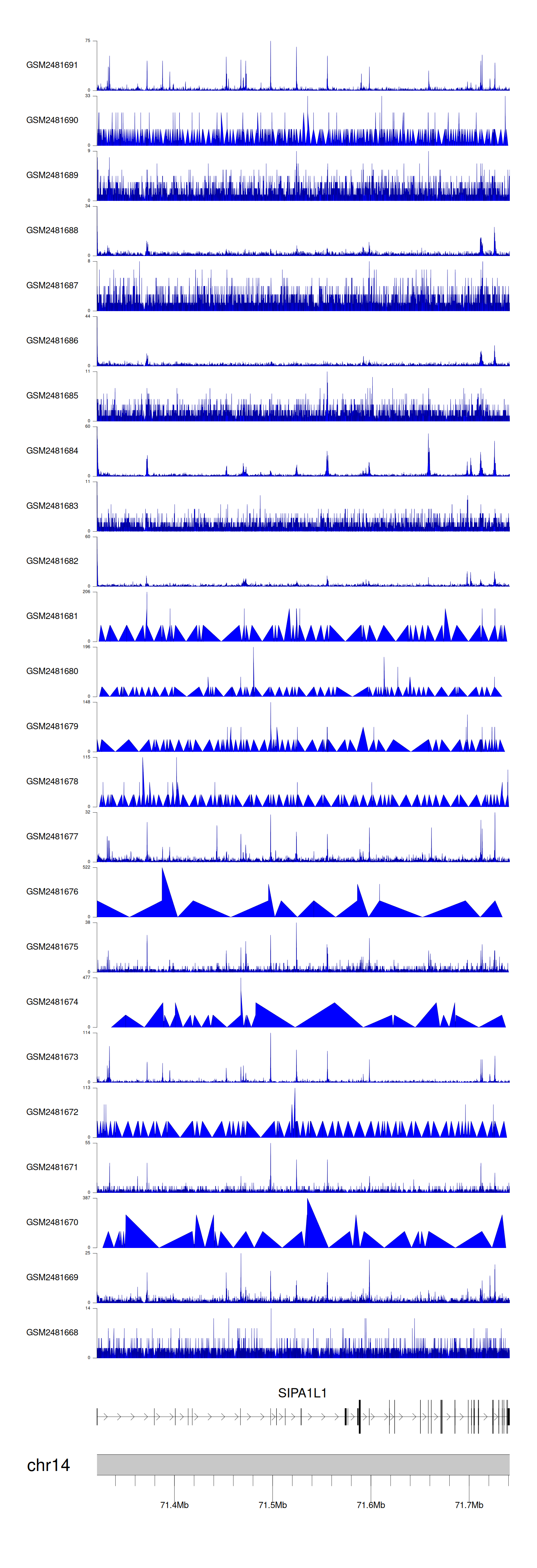 > Dataset: GSE94732 - SIPA1L1 peak across samples