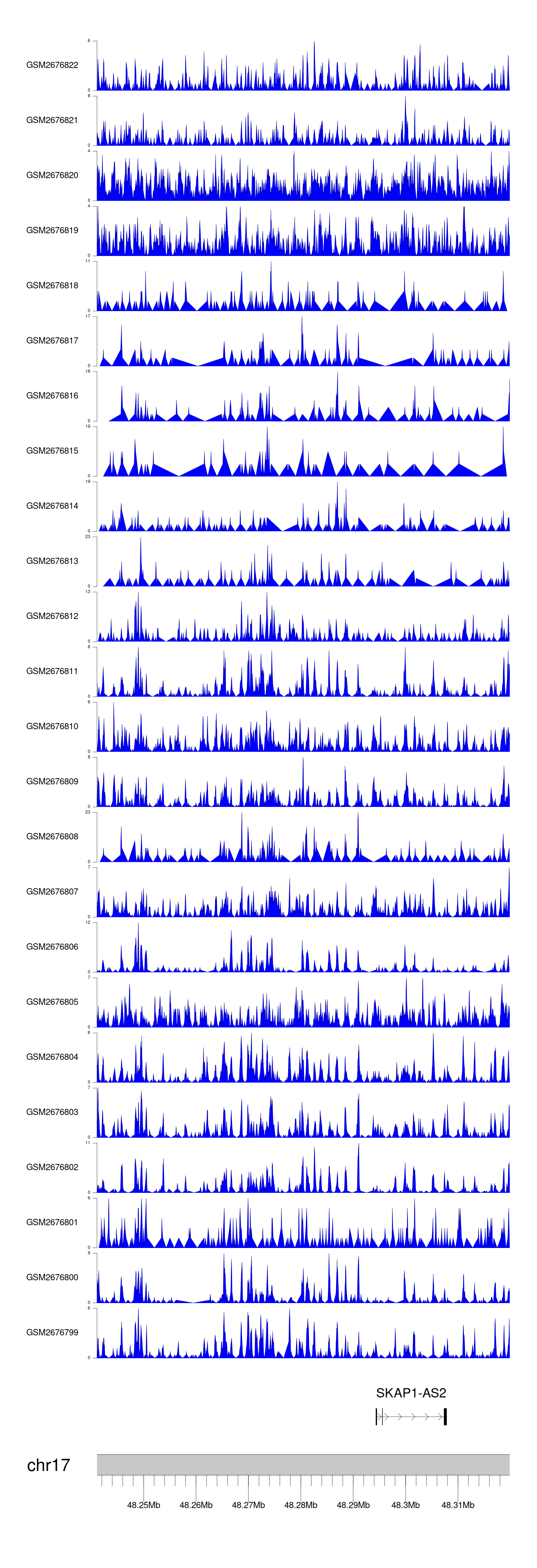 > Dataset: GSE30738 - SKAP1-AS2 peak across samples