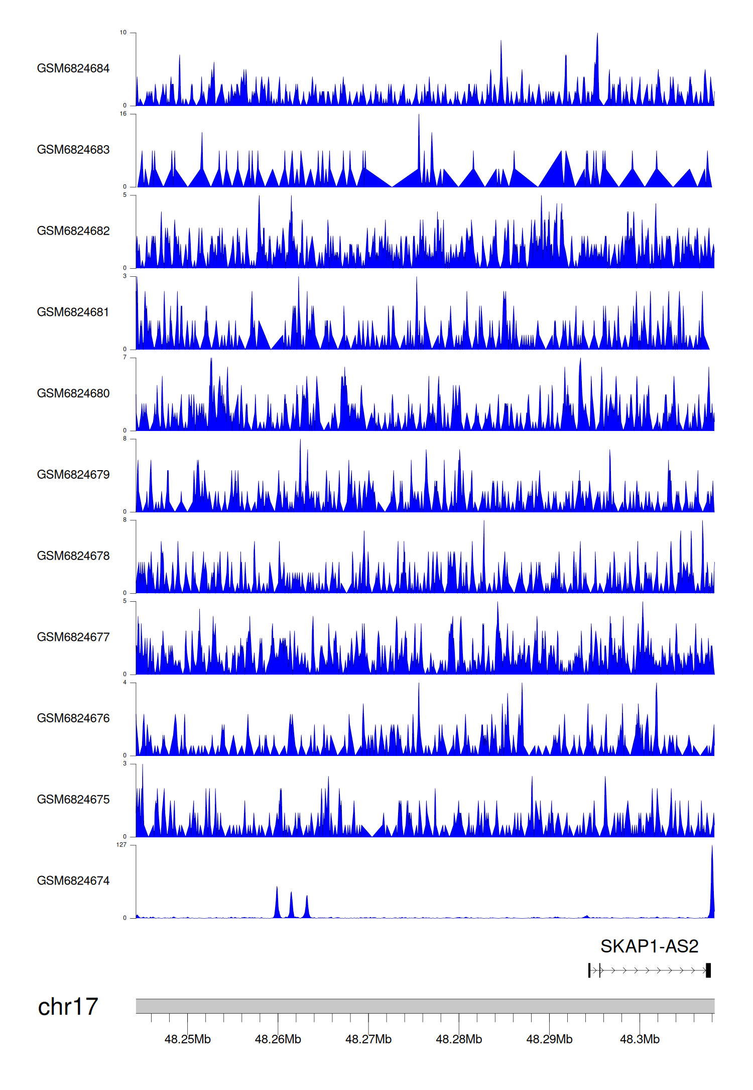 > Dataset: GSE211651 - SKAP1-AS2 peak across samples