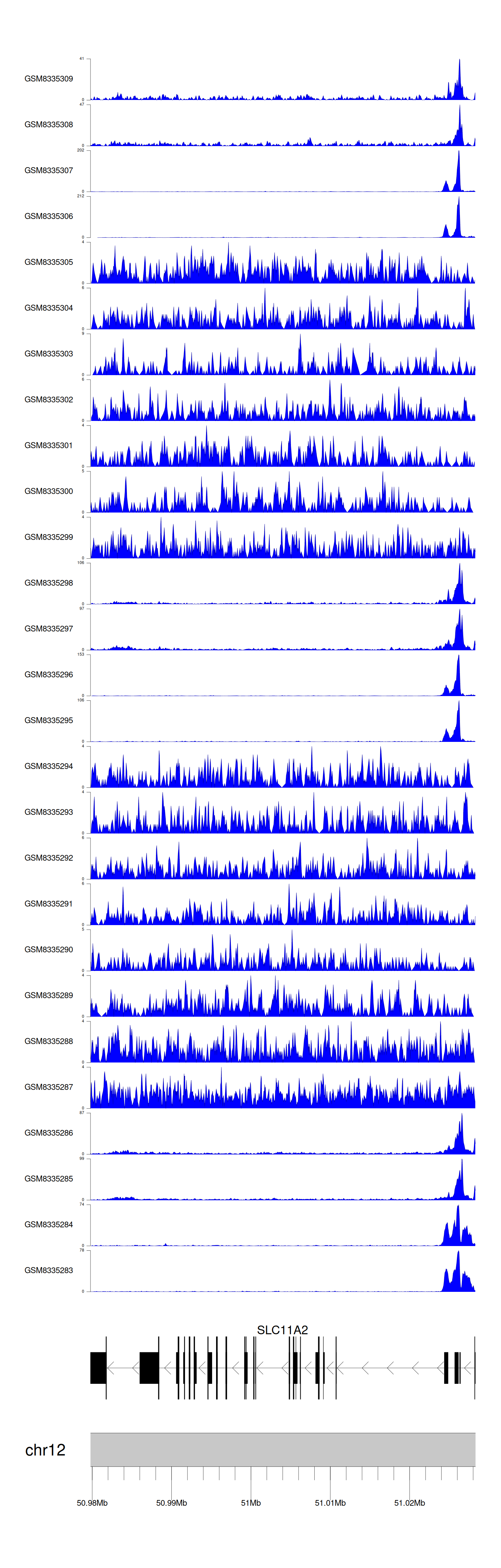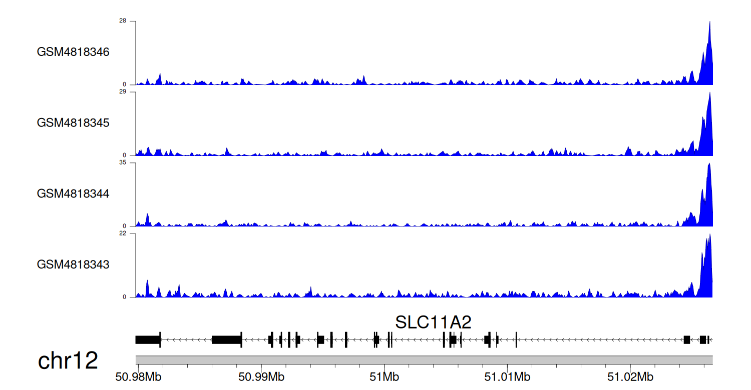 > Dataset: GSE270130 - SLC11A2 peak across samples