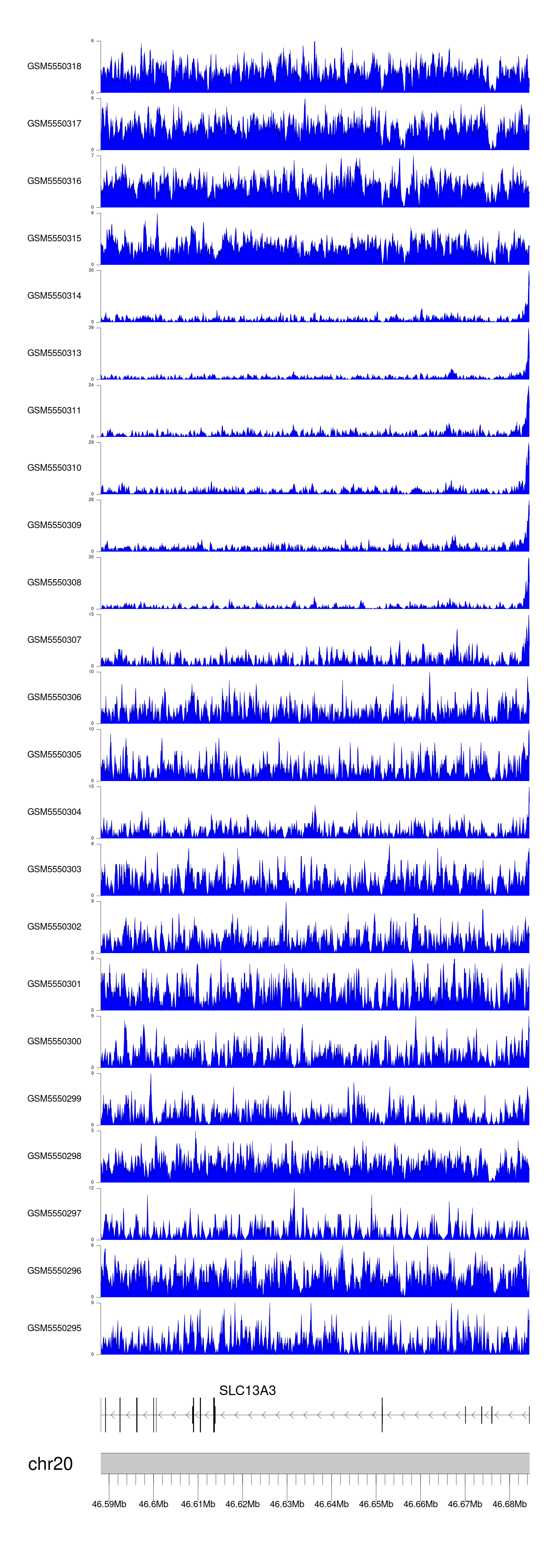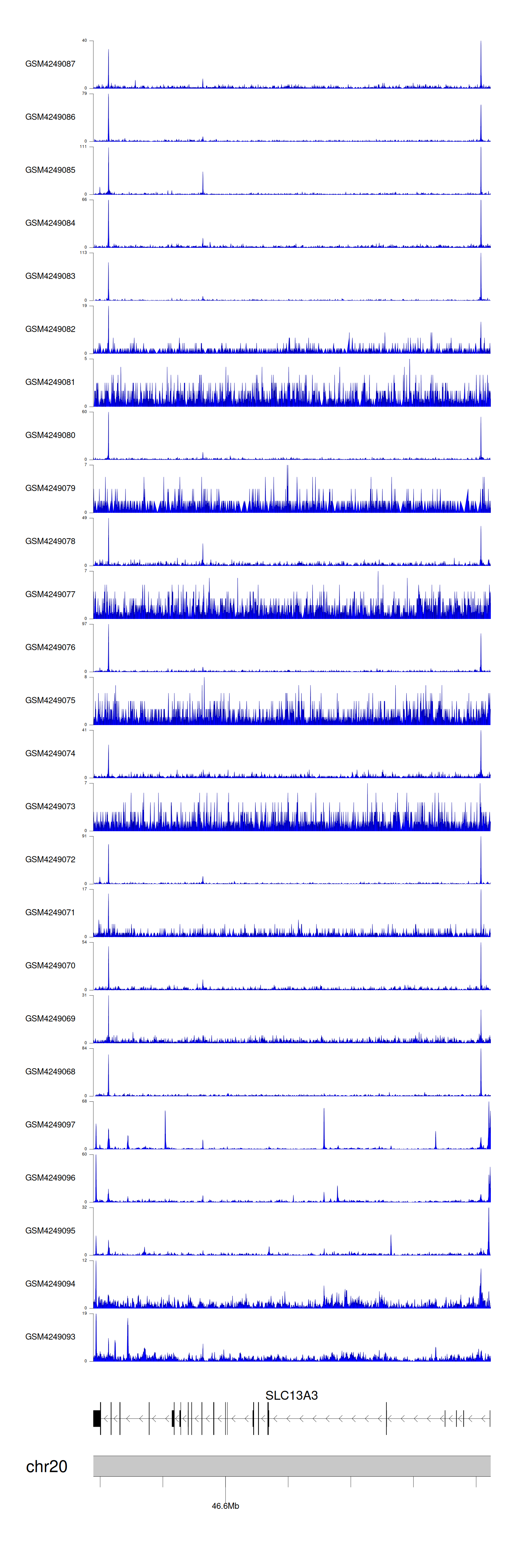 > Dataset: GSE143026 - SLC13A3 peak across samples