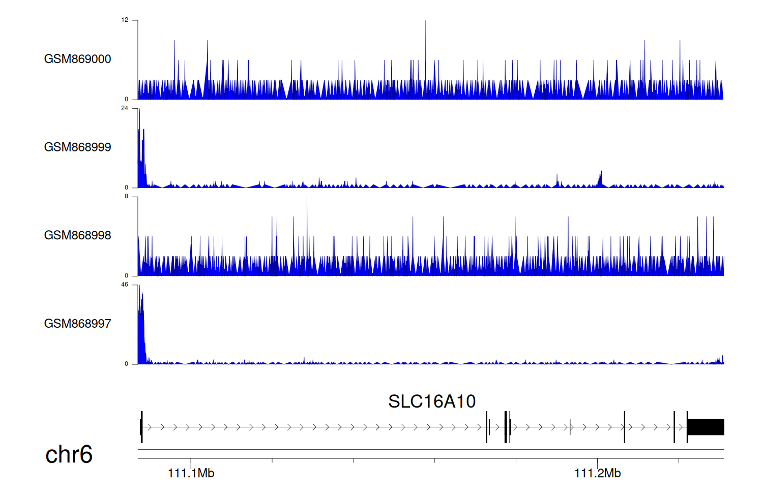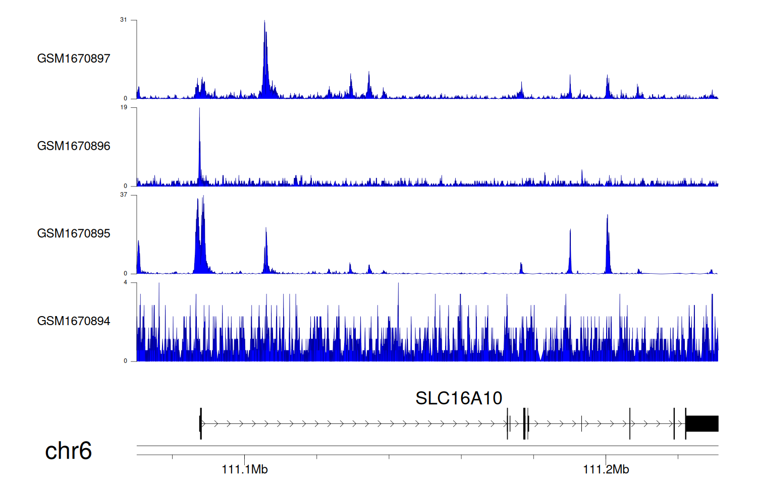 > Dataset: GSE68402 - SLC16A10 peak across samples