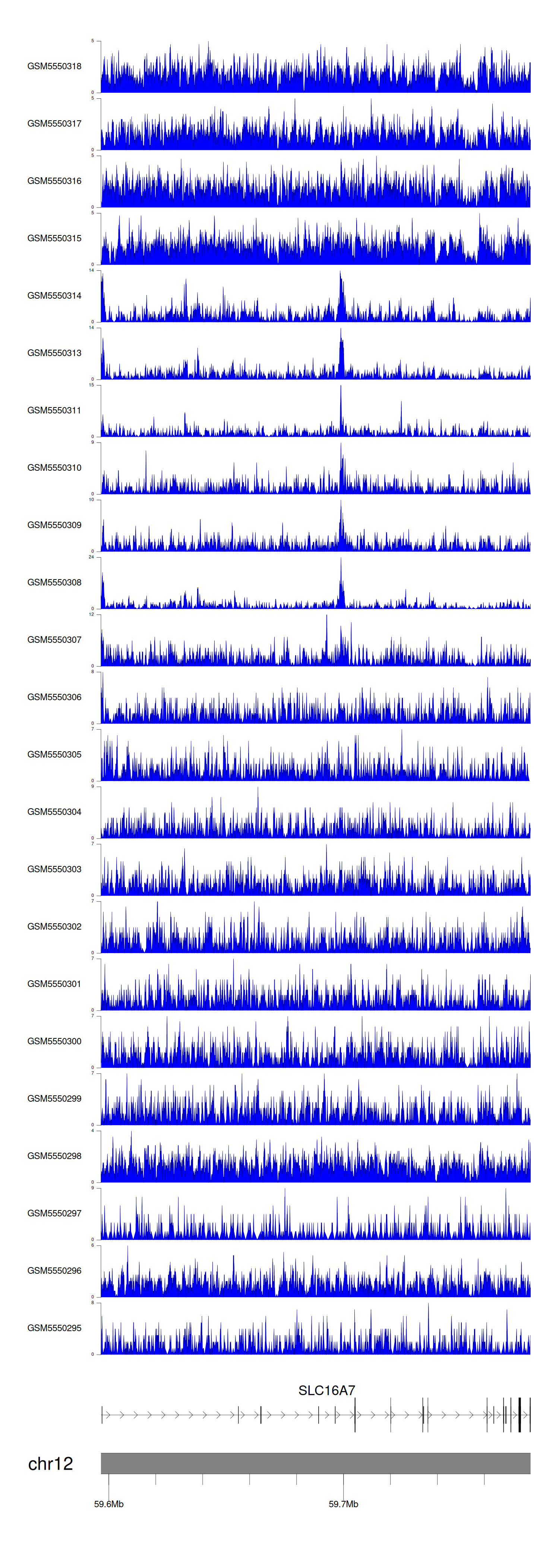 > Dataset: GSE143026 - SLC16A7 peak across samples