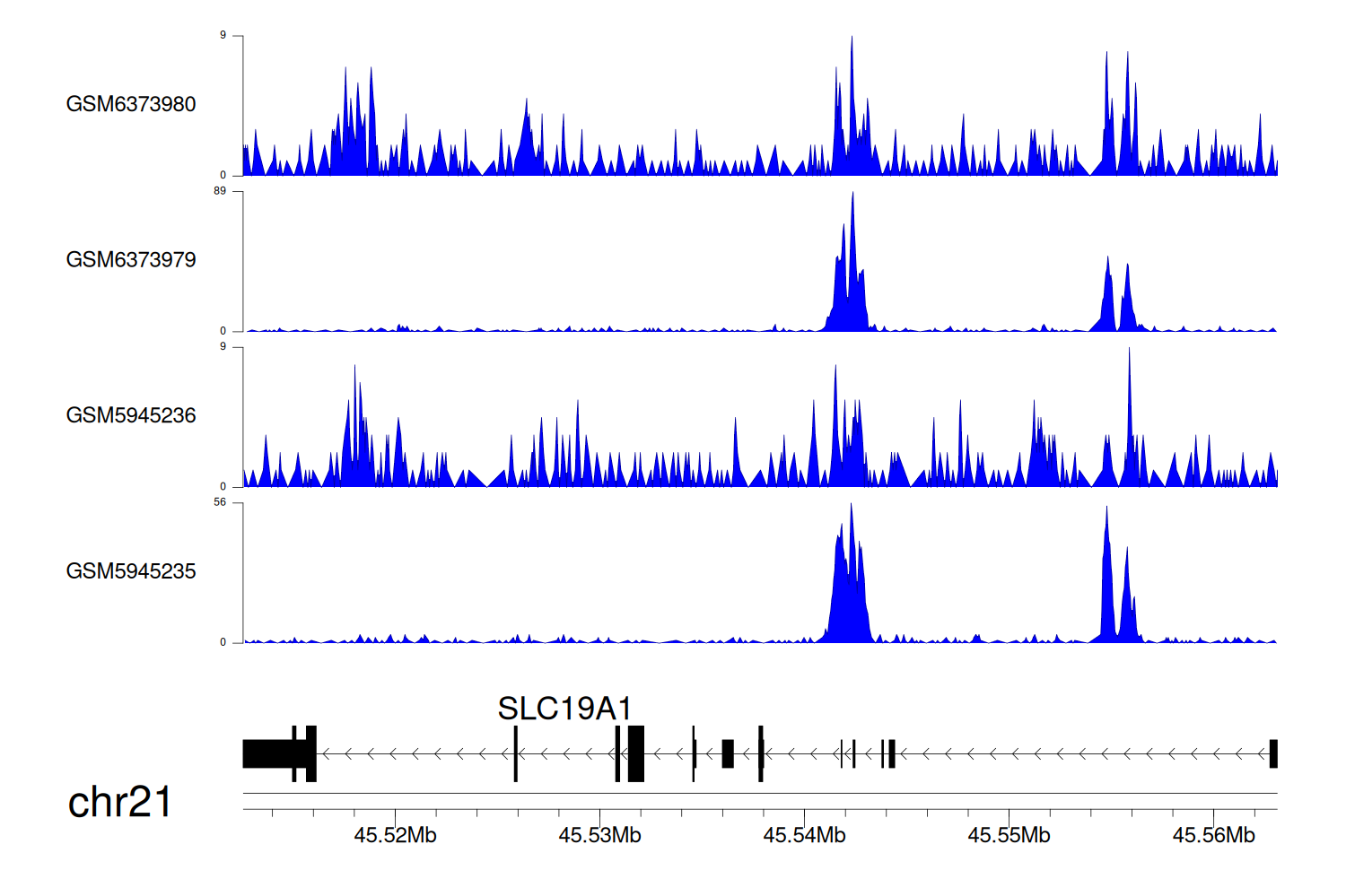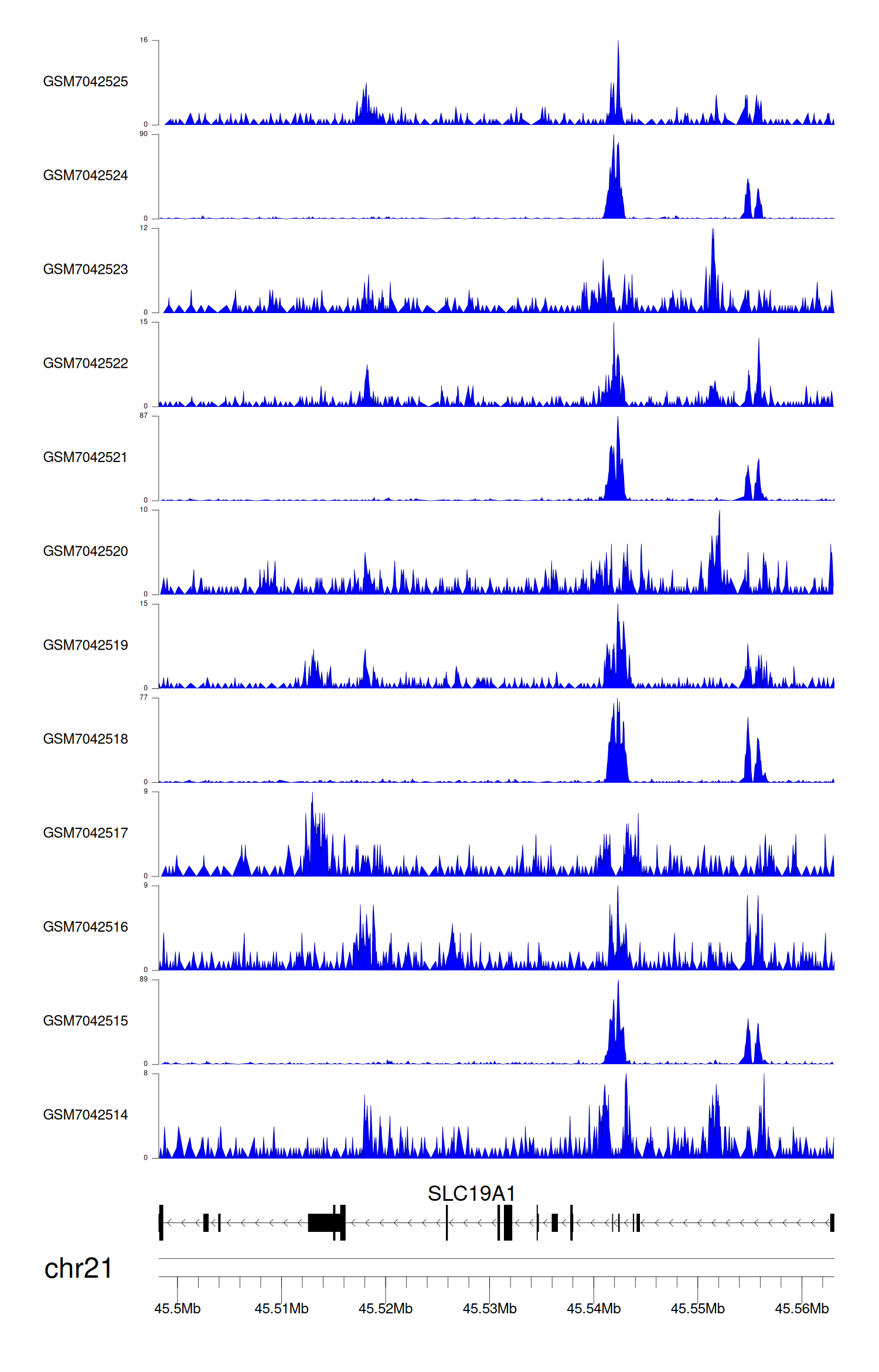 > Dataset: GSE198334 - SLC19A1 peak across samples