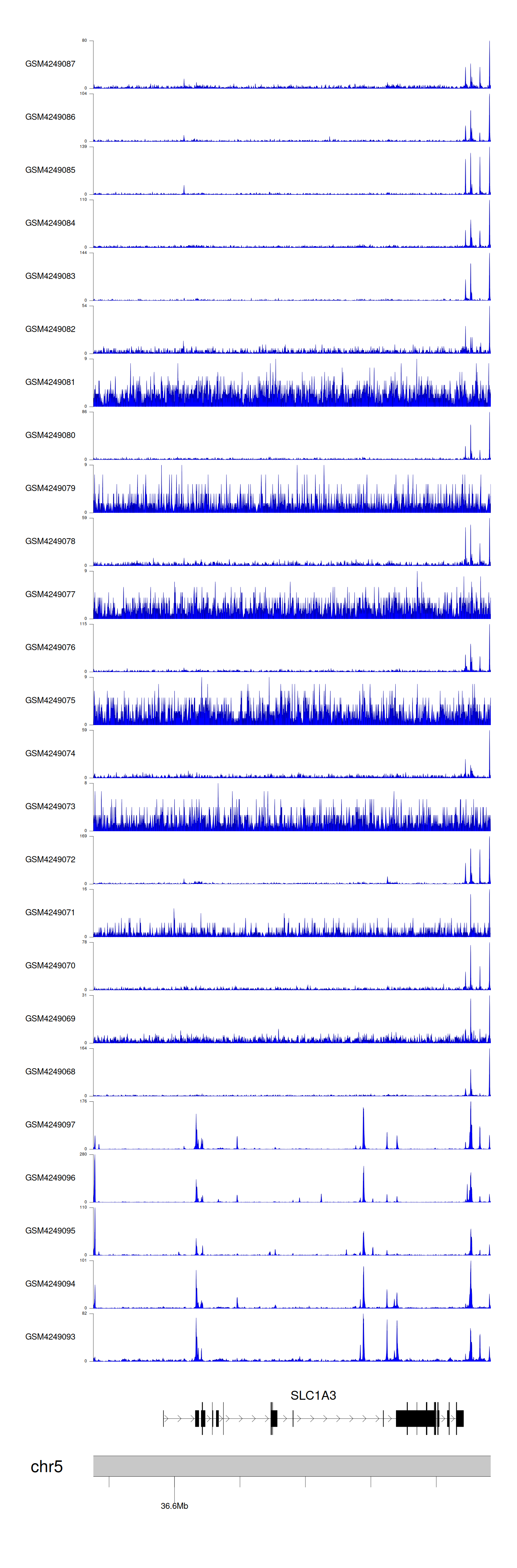 > Dataset: GSE143026 - SLC1A3 peak across samples
