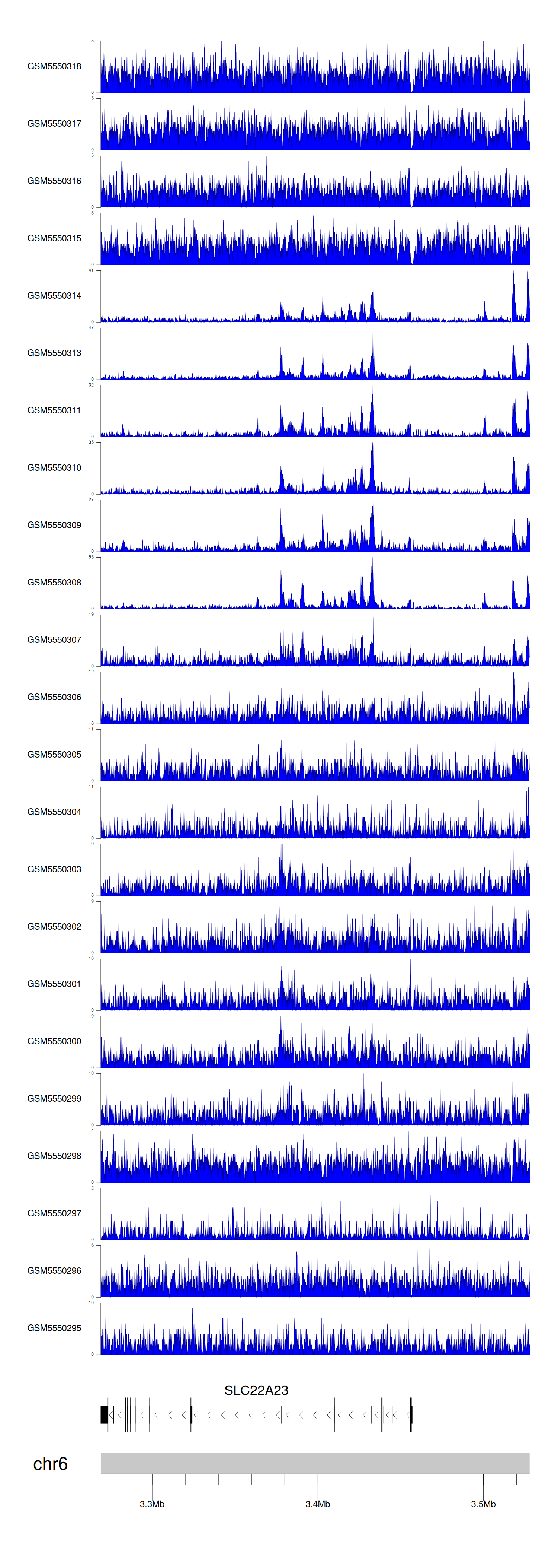 > Dataset: GSE143026 - SLC22A23 peak across samples