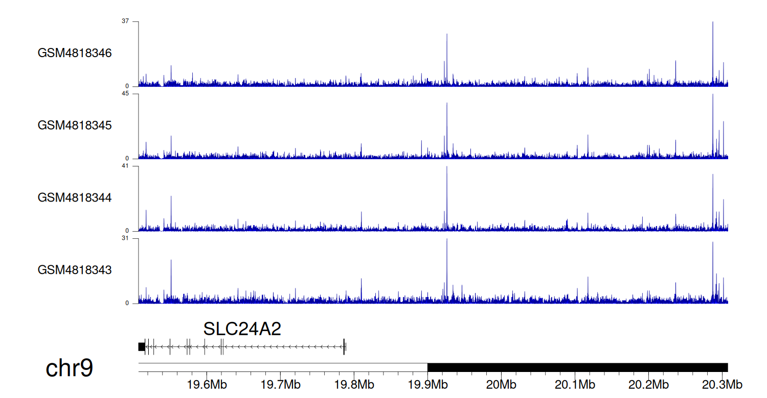 > Dataset: GSE131257 - SLC24A2 peak across samples